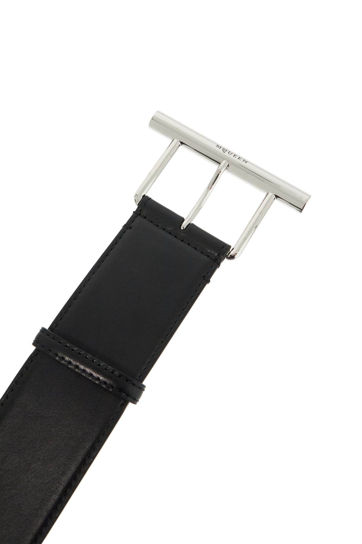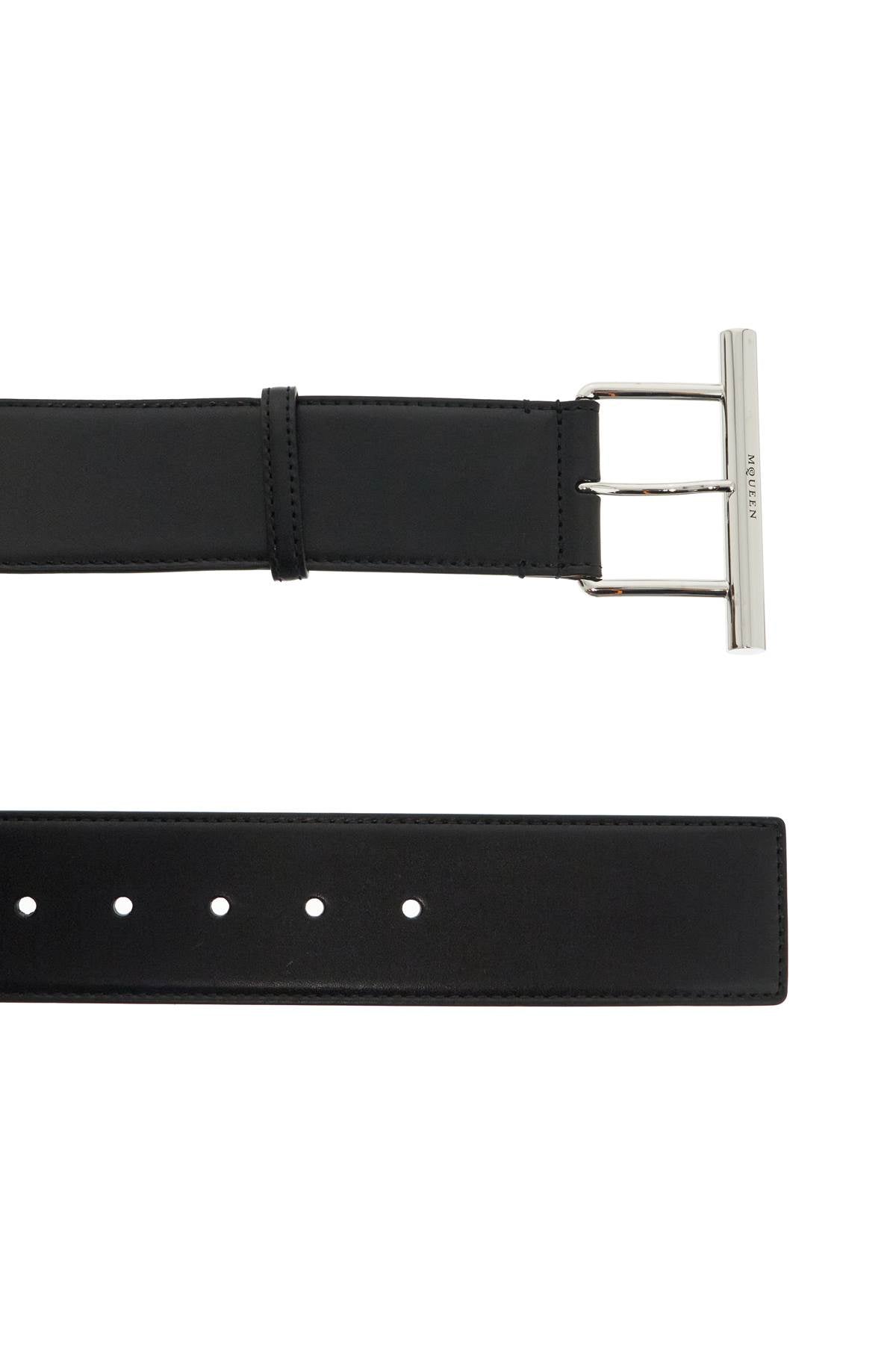 This Alexander McQueen belt is made of smooth leather with a silver metal Cross-Bar buckle. The item in the photo corresponds to size 75. Size and Fit - Belt Height = 5 cm,