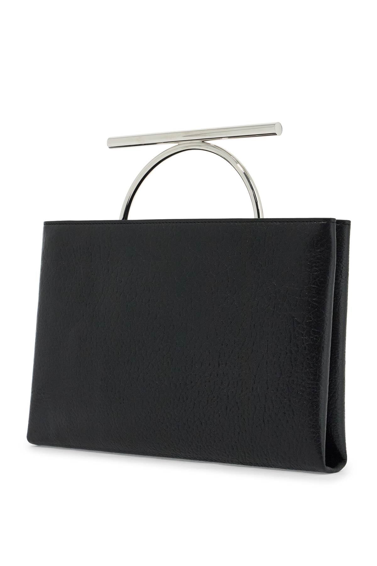 The Alexander Mcqueen clutch is made of full-grain leather and features a metal logo lettering on the front. Its folded design includes an elegant Cross-bar handle. The clutch has two zippered compartments, one with a D-ring detail, and a lined interior with a slot for credit cards. The metallic elements have a silver finish. Size and Fit - Bag Length = 30,5 cm, Bag Height = 20 cm, Bag Weight = 3 cm, Handle Height = 6 cm,