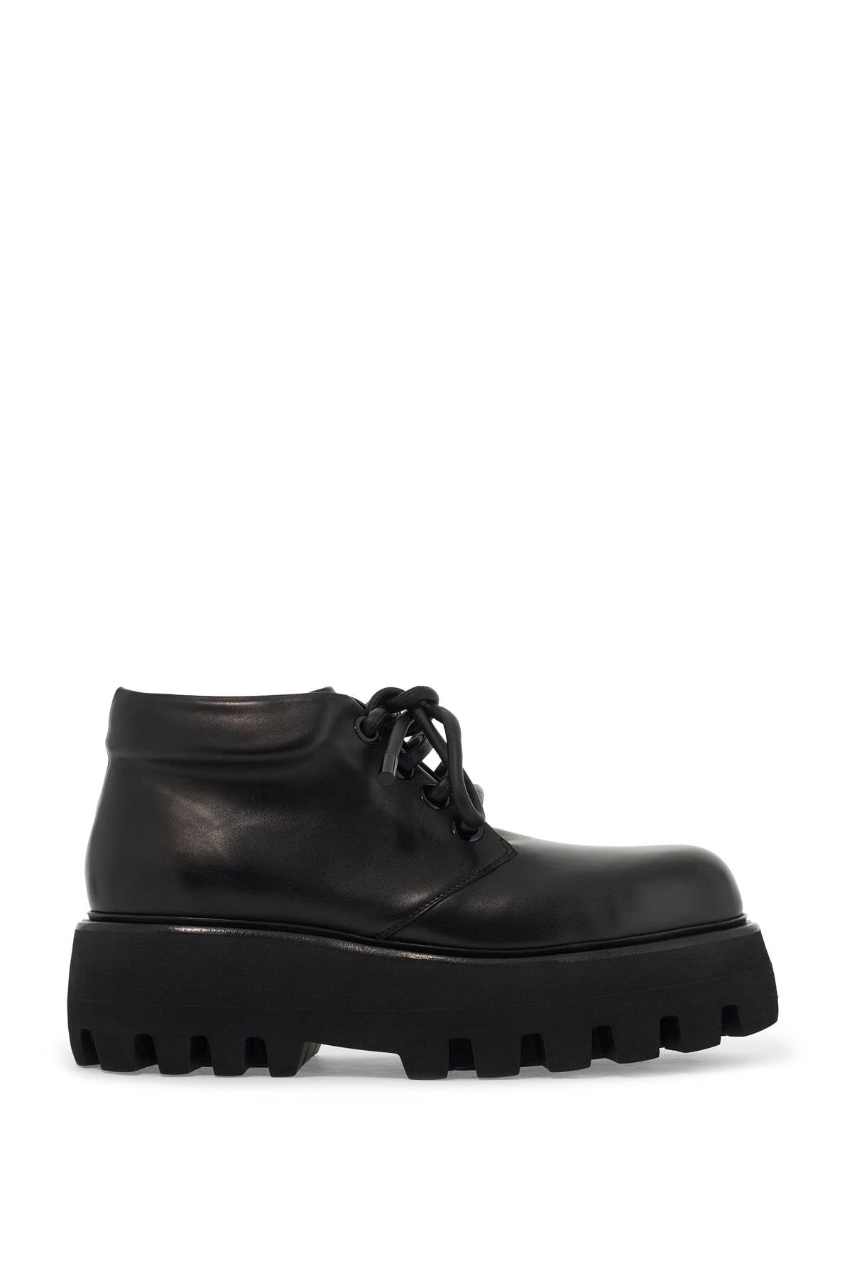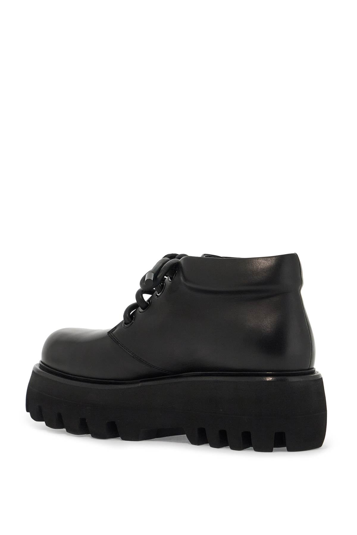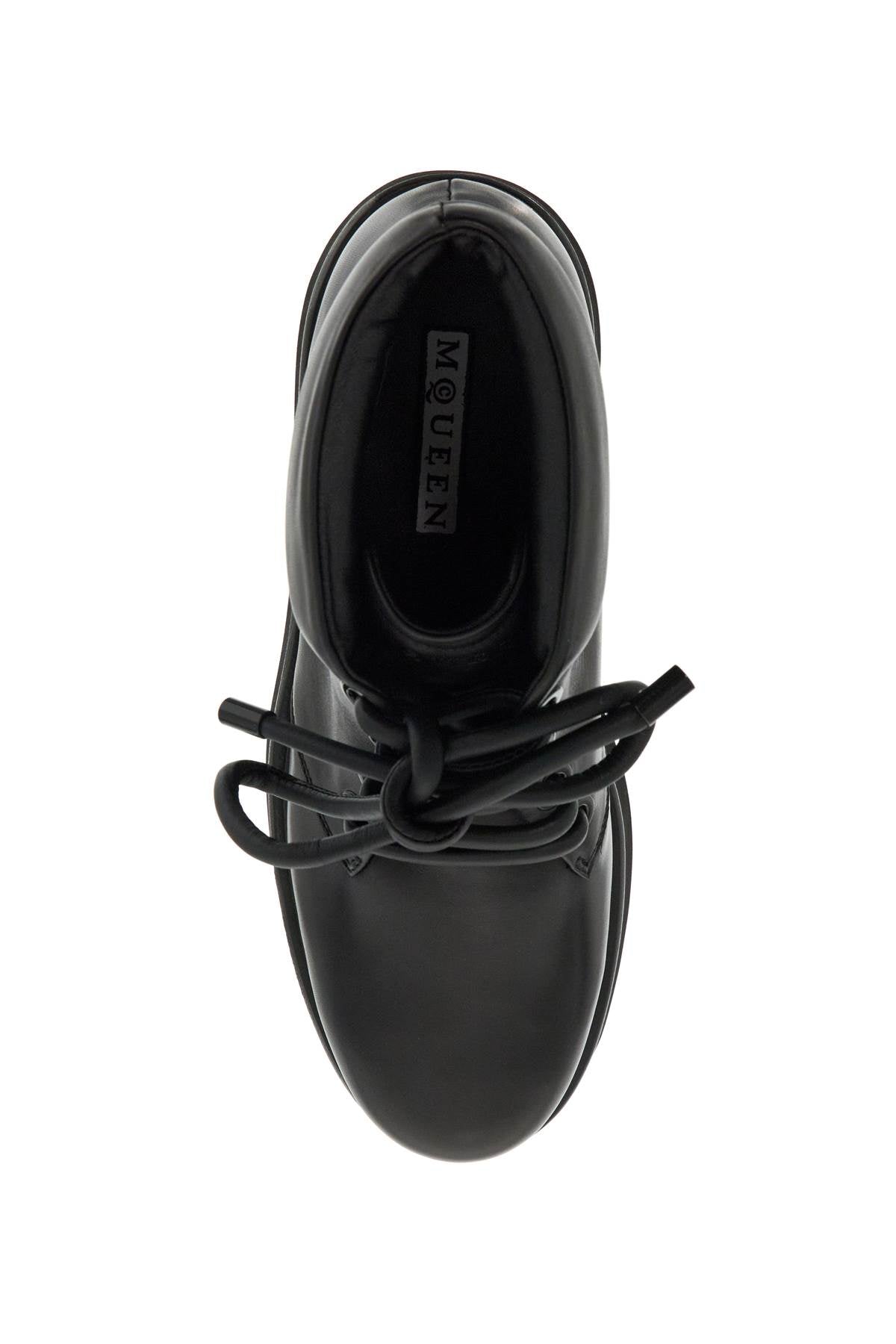 The Alexander McQueen Stringate Sofa is made of smooth leather and features a voluminous design with tubular leather laces and padded ankle. The interior is also lined in leather, while the sole has a serrated rubber platform. These shoes come with classic spare laces for added convenience. Size and Fit - Heel Height = 7 cm,
