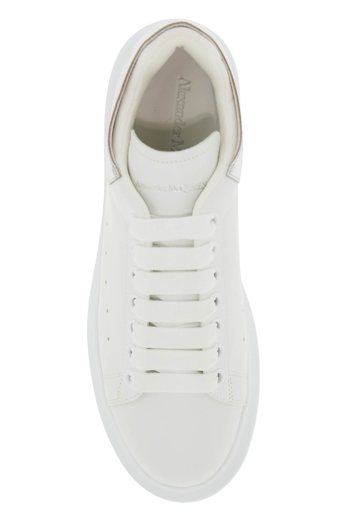 Alexander McQueen leather sneakers with oversized rubber sole and leather lining with removable insole. Silver-tone lettering logo print on the tongue and on the laminated heel tab, lace-up closure and side perforations. Spare laces included. Size and Fit - Heel Height = 4 cm,