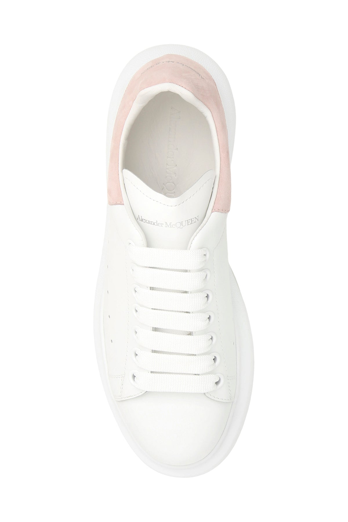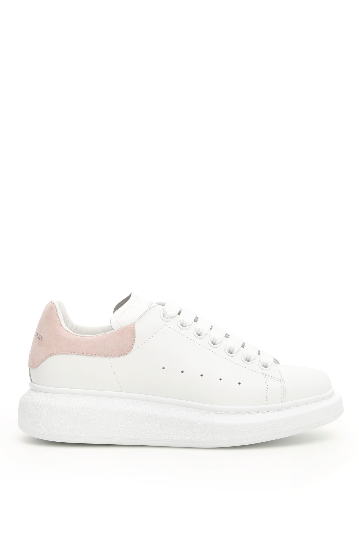 Alexander McQueen leather sneakers with oversized rubber sole and leather lining with removable insole. Contrast suede heel detail, polished metal eyelets, gold-printed logo on the tongue and on the back, perforated sides. They feature extra laces. Size and Fit - Heel Height = 4 cm,