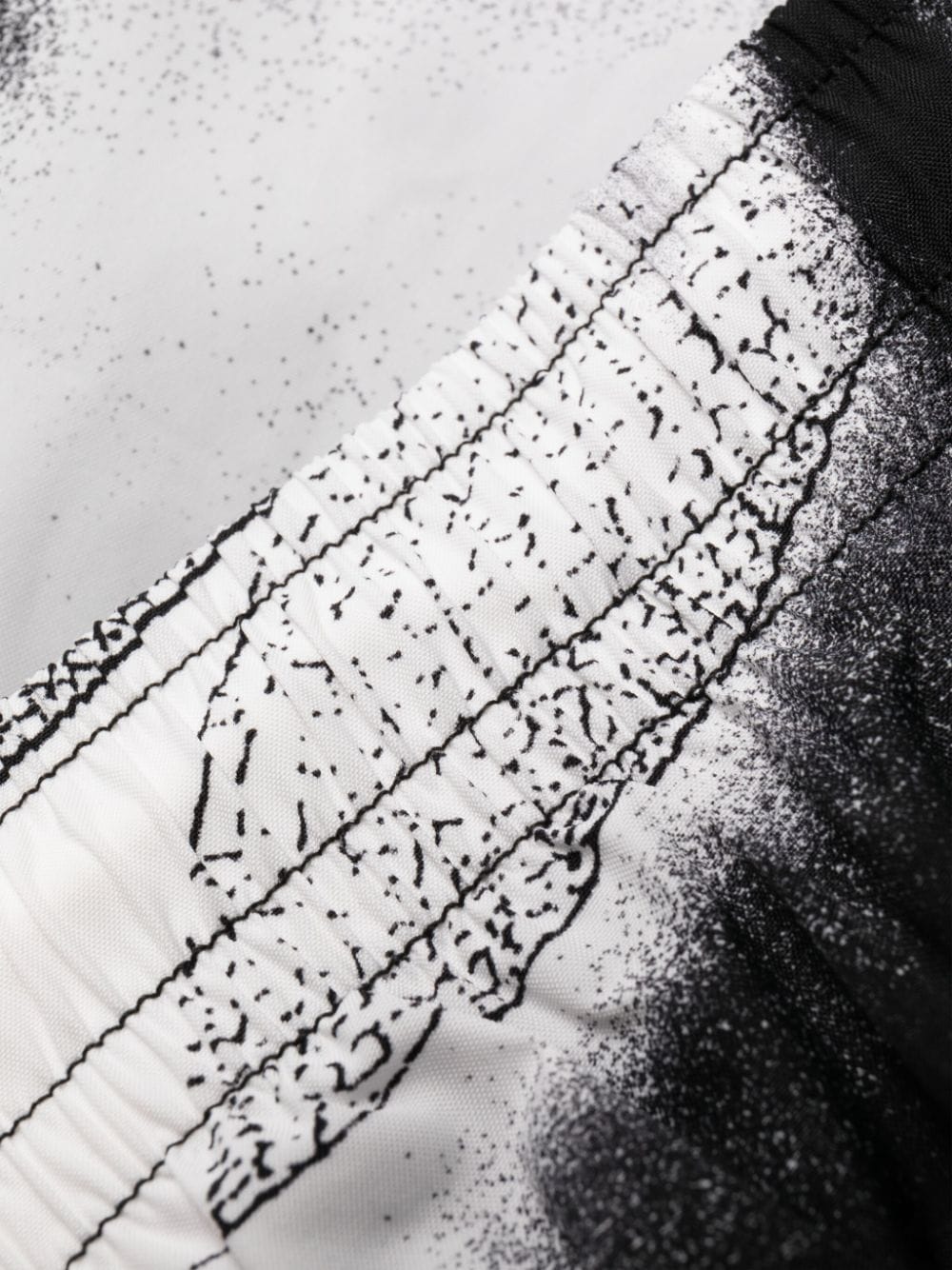 black/white Dragonfly print embroidered logo at the leg elasticated waistband with internal drawstring two side slit pockets straight leg thigh-length mesh lining Be mindful to try on swimwear over your own garments. Size and Fit - This piece fits true to size. We recommend you get your regular size. Model is 1,84m / 6ft 1in wearing size M