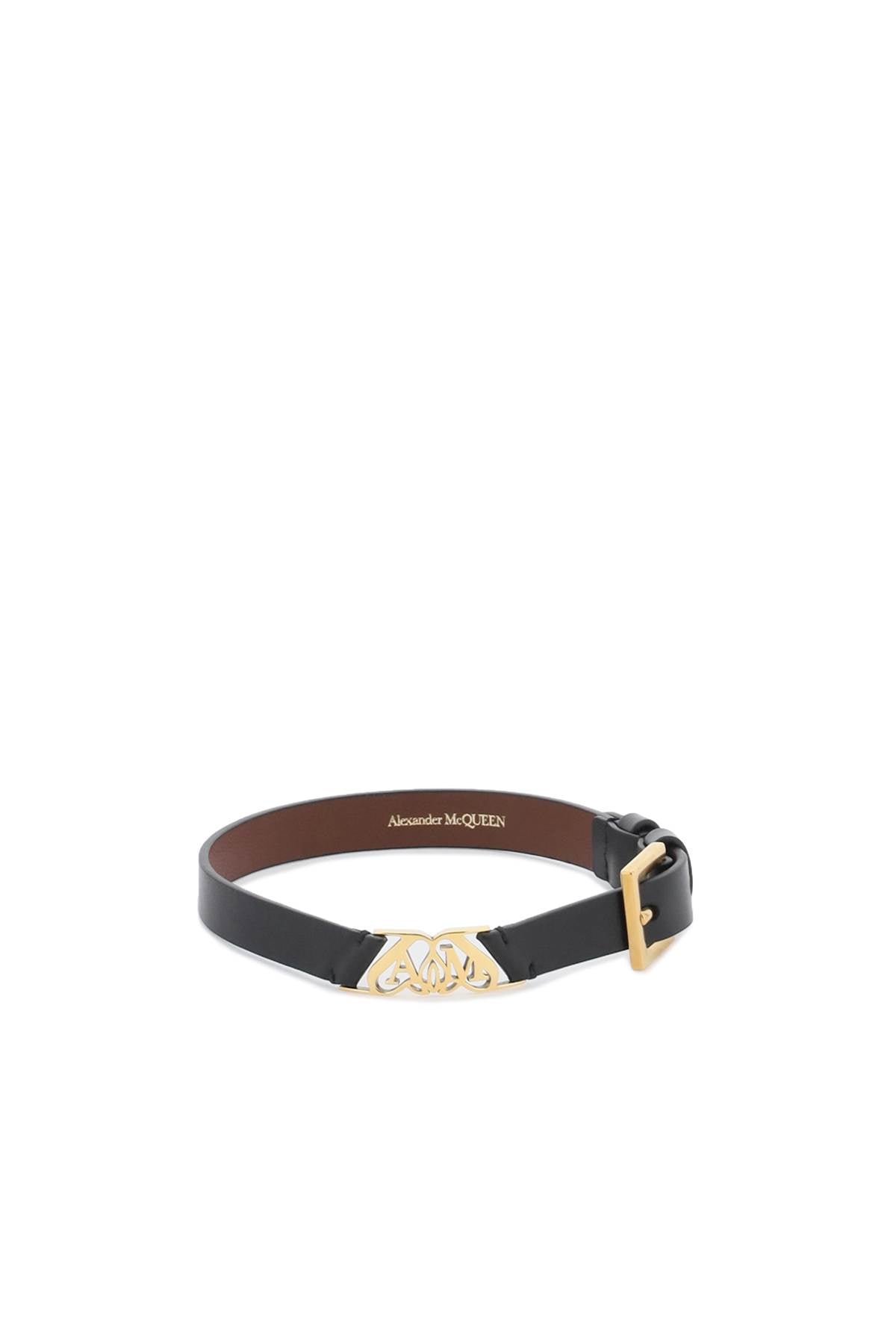 Alexander McQueen adjustable double bracelet made of leather with gold metal Seal logo. Size and Fit - Accessory Length = 39 cm,