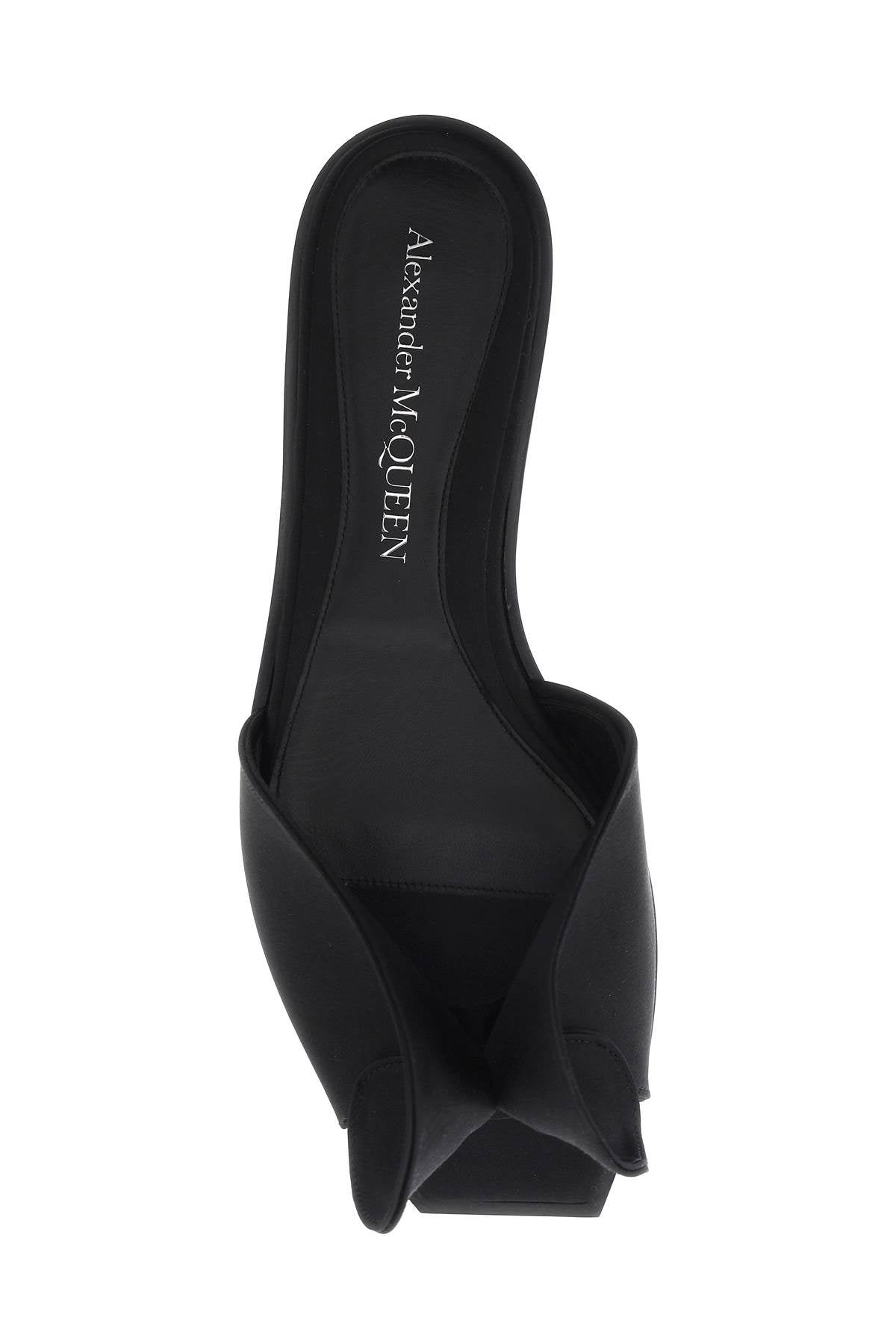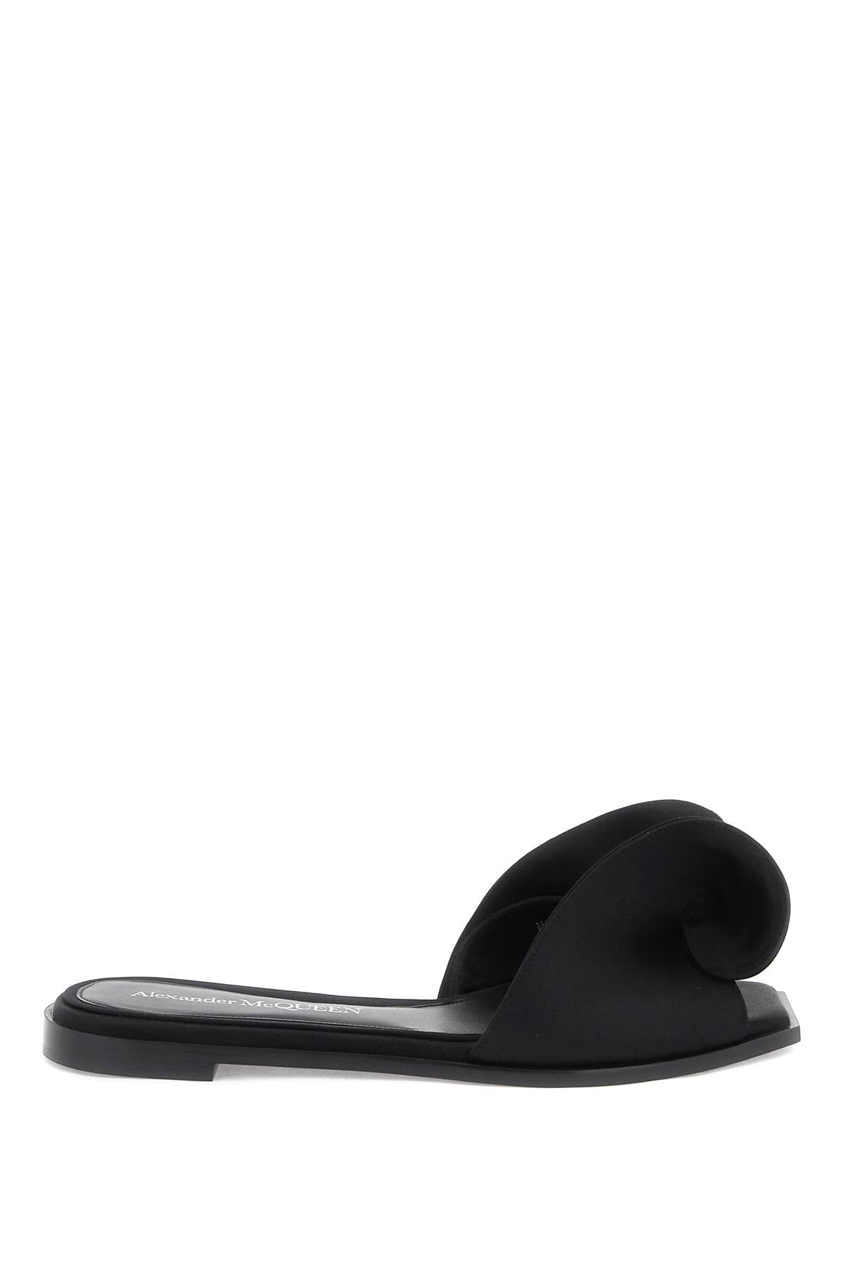 Alexander McQueen slides made of silk and featuring an adorned band. Leather footbed, and leather sole.