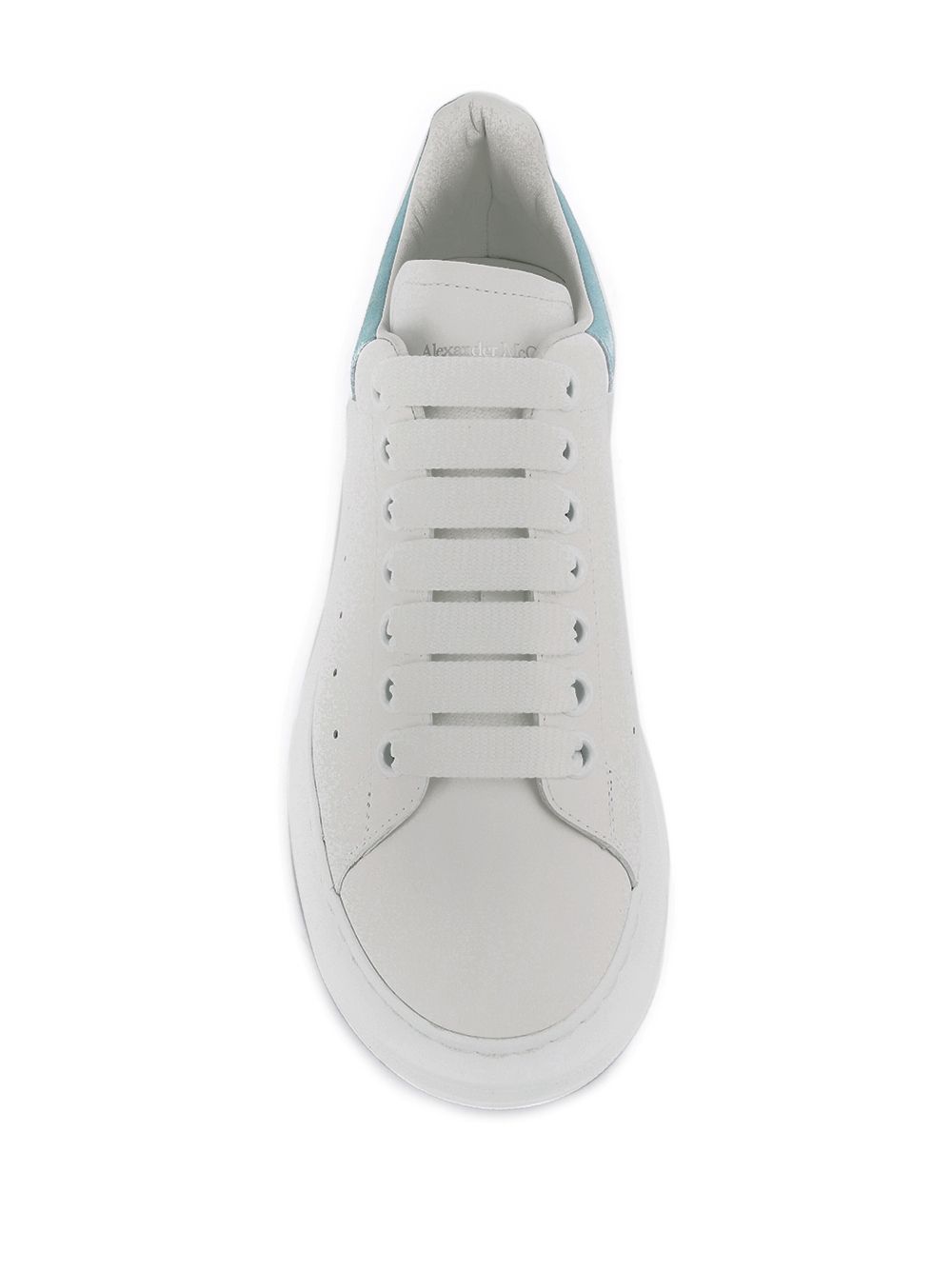 Oversized low-top sneakers from Alexander McQueen featuring white, calf leather, contrasting heel counter, branded heel counter, round toe, front lace-up fastening and oversize rubber sole. Size and Fit - Heel 1,8 in / 4,5 cm; Platform 1,4 in / 3,5 cm