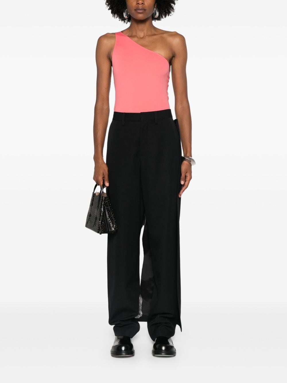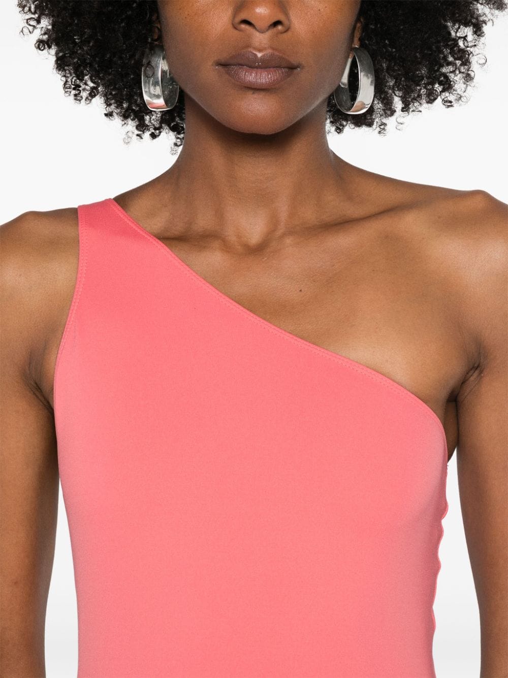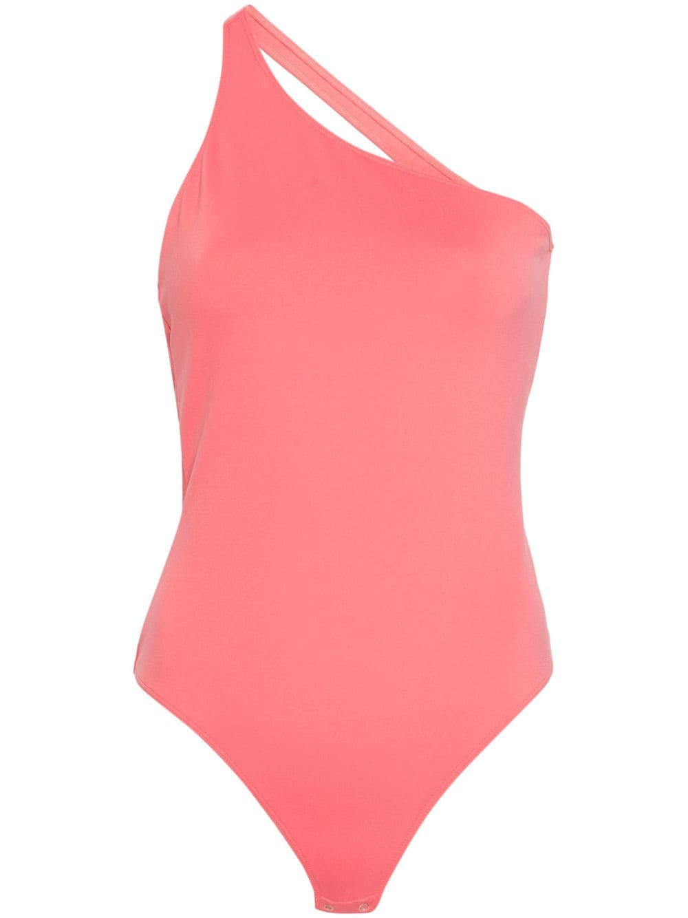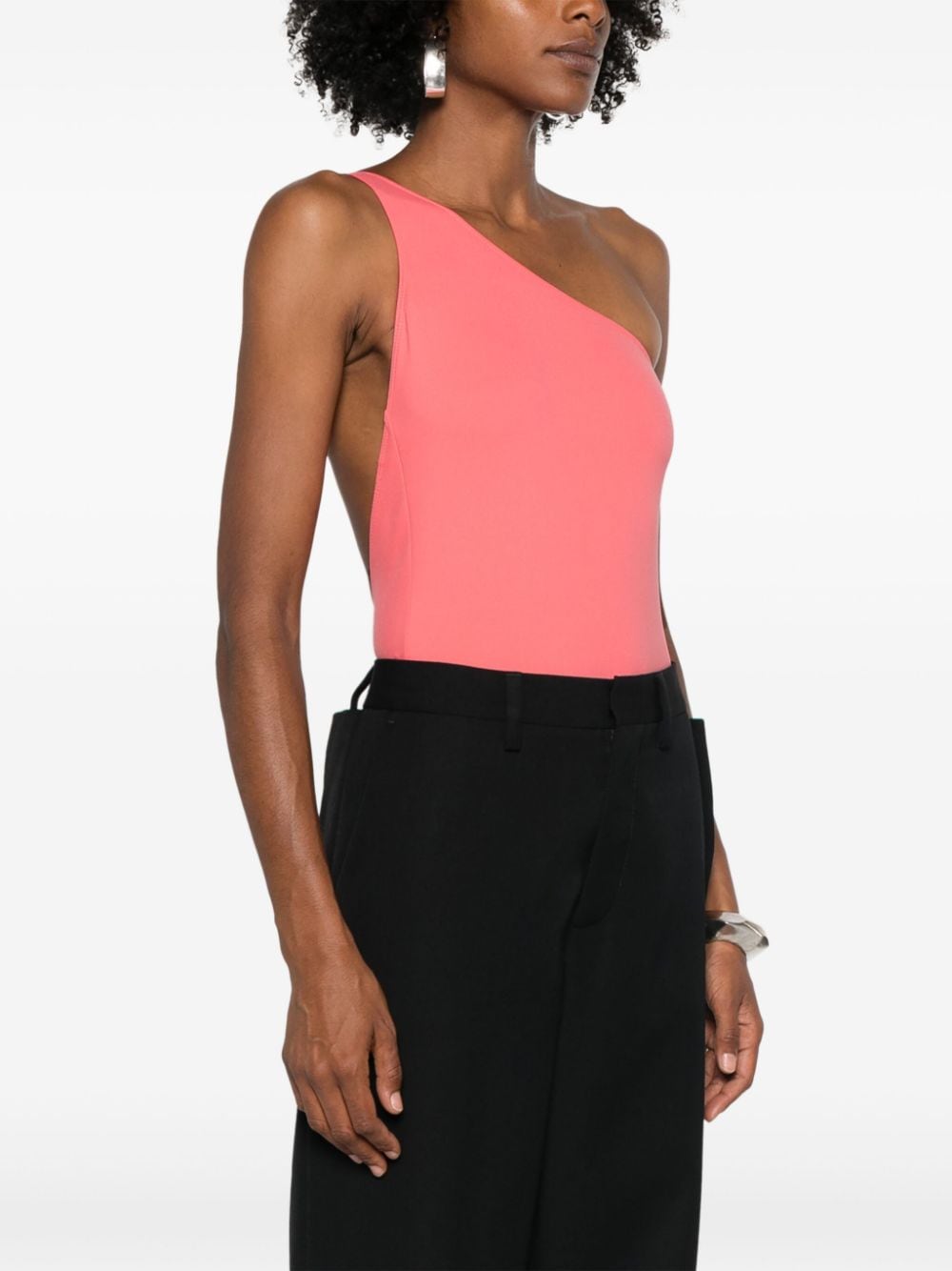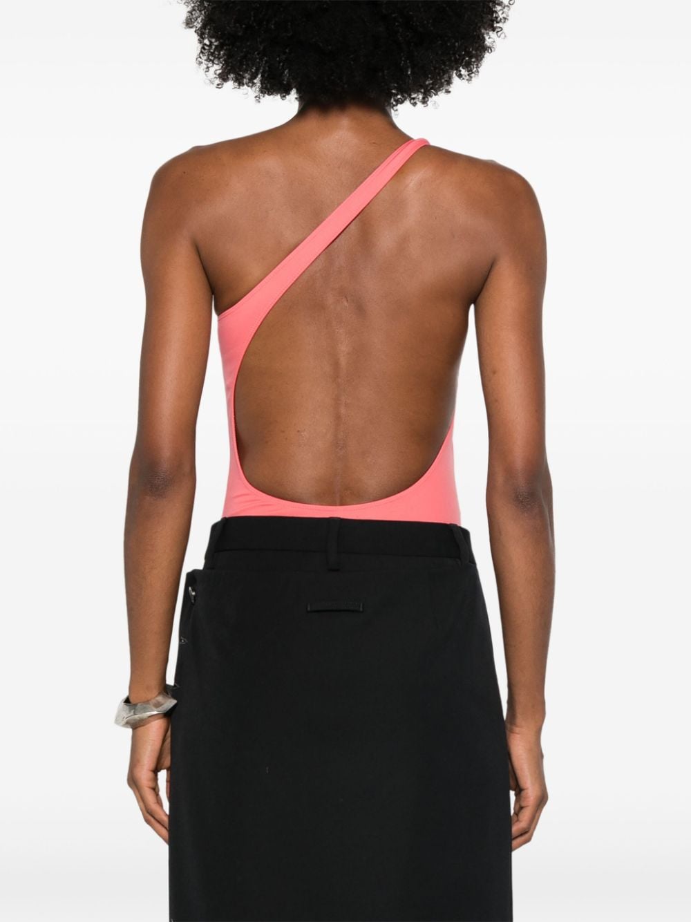 Coral-pink open-back asymmetric bodysuit from Alexander McQueen featuring one-shoulder, open back and concealed press-stud fastening. Just a reminder that this piece must be tried on over your own garments.. Size and Fit - Model is 1,75m / 5ft 8in wearing size 40 (IT)