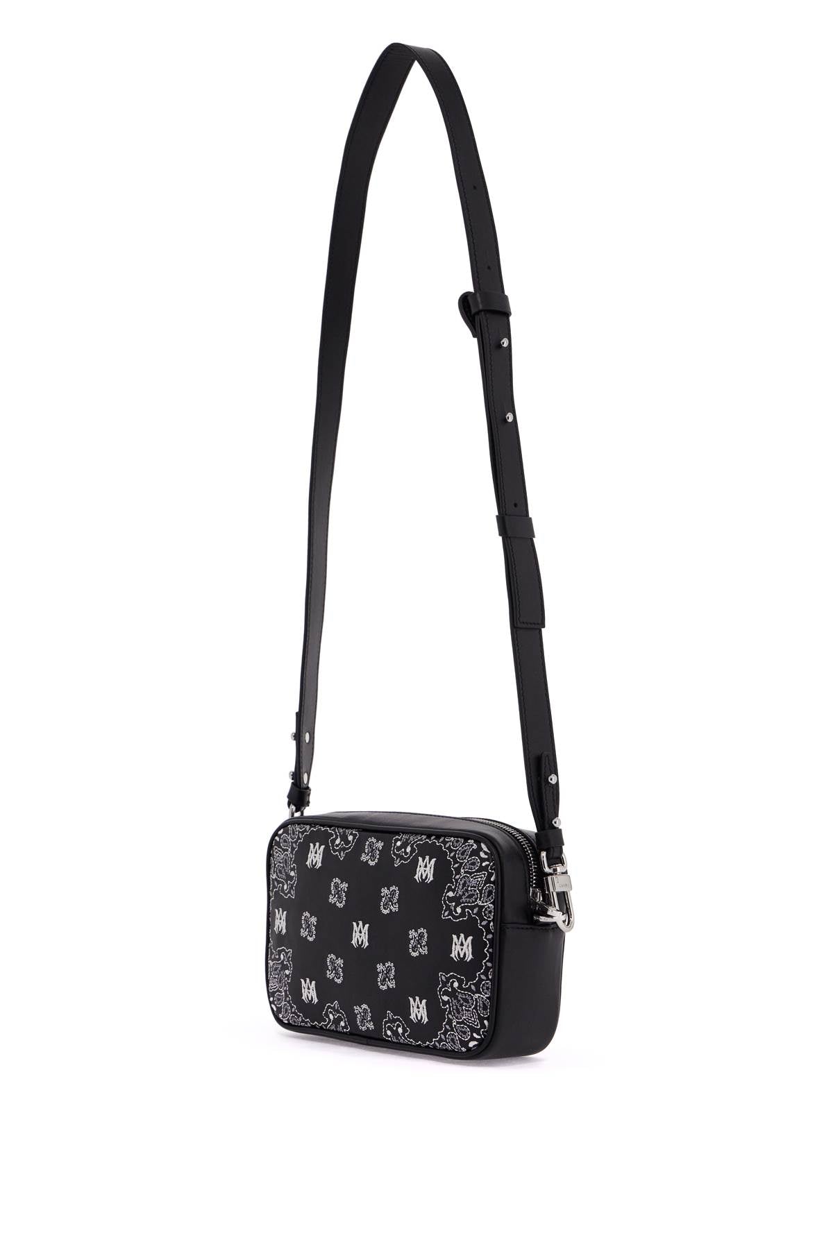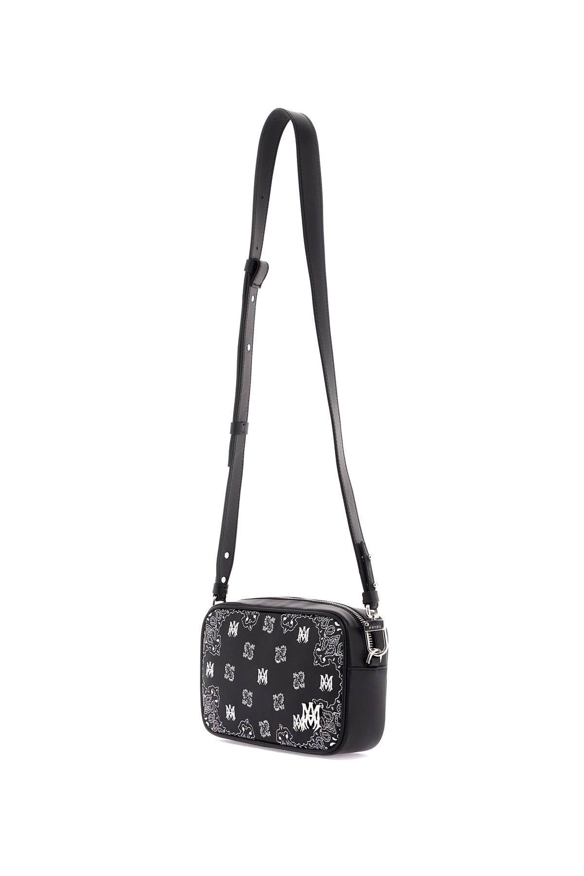The Amiri camera bag is made of smooth leather and embellished with contrasting Bandana embroidery on the front and back, as well as MA hardware applied on the front. It features a top zip closure, a logo-lined interior in nylon, and an adjustable and removable leather shoulder strap. The metal accessories have a silver finish. Size and Fit - Bag Length = 20 cm, Bag Height = 12 cm, Bag Weight = 5,5 cm,
