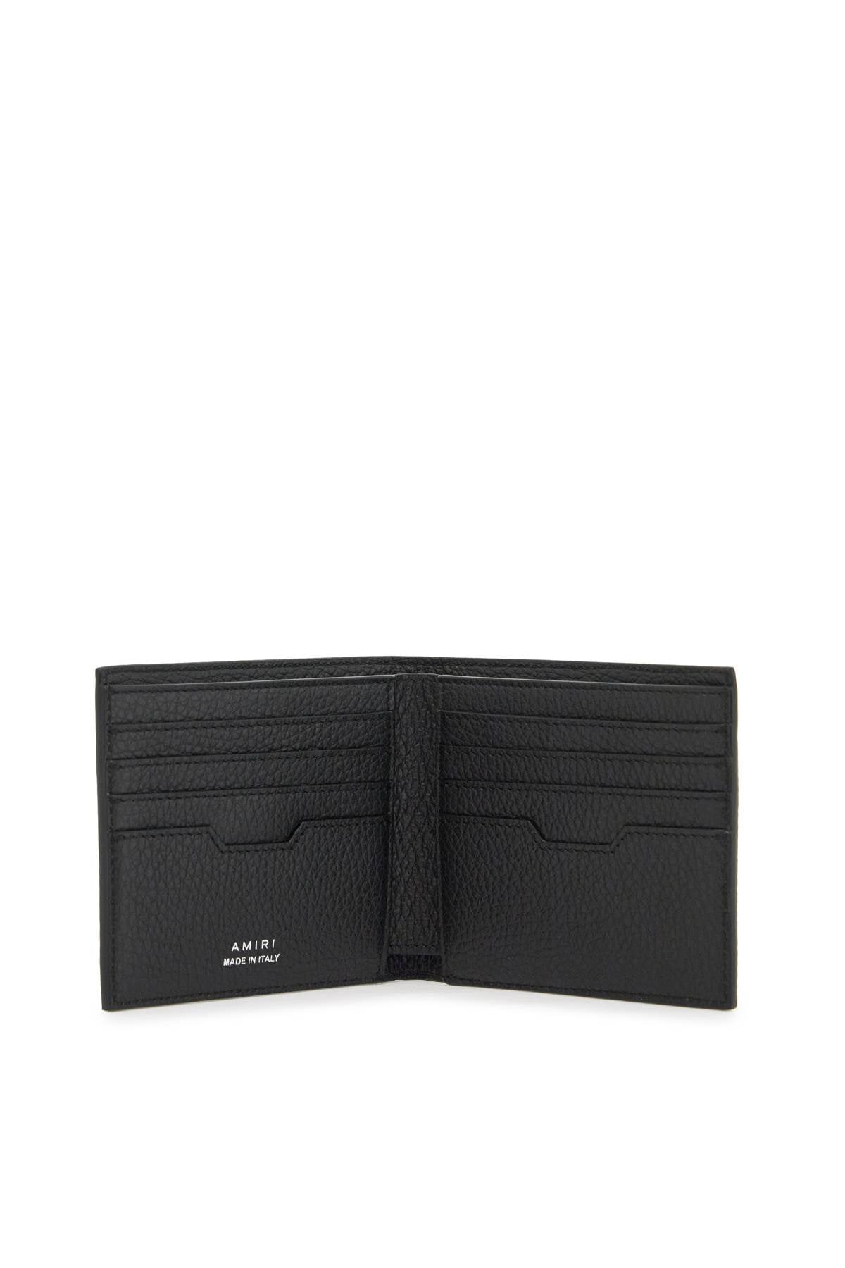 The Amiri bi-fold wallet is made of hammered leather with an all-over paisley pattern and micro monogram. It features a compartment for bills, eight credit card slots, and two slip pockets. Size and Fit - Accessory Length = 11,5 cm, Accessory Height = 9,5 cm, Accessory Weight = 1,5 cm,