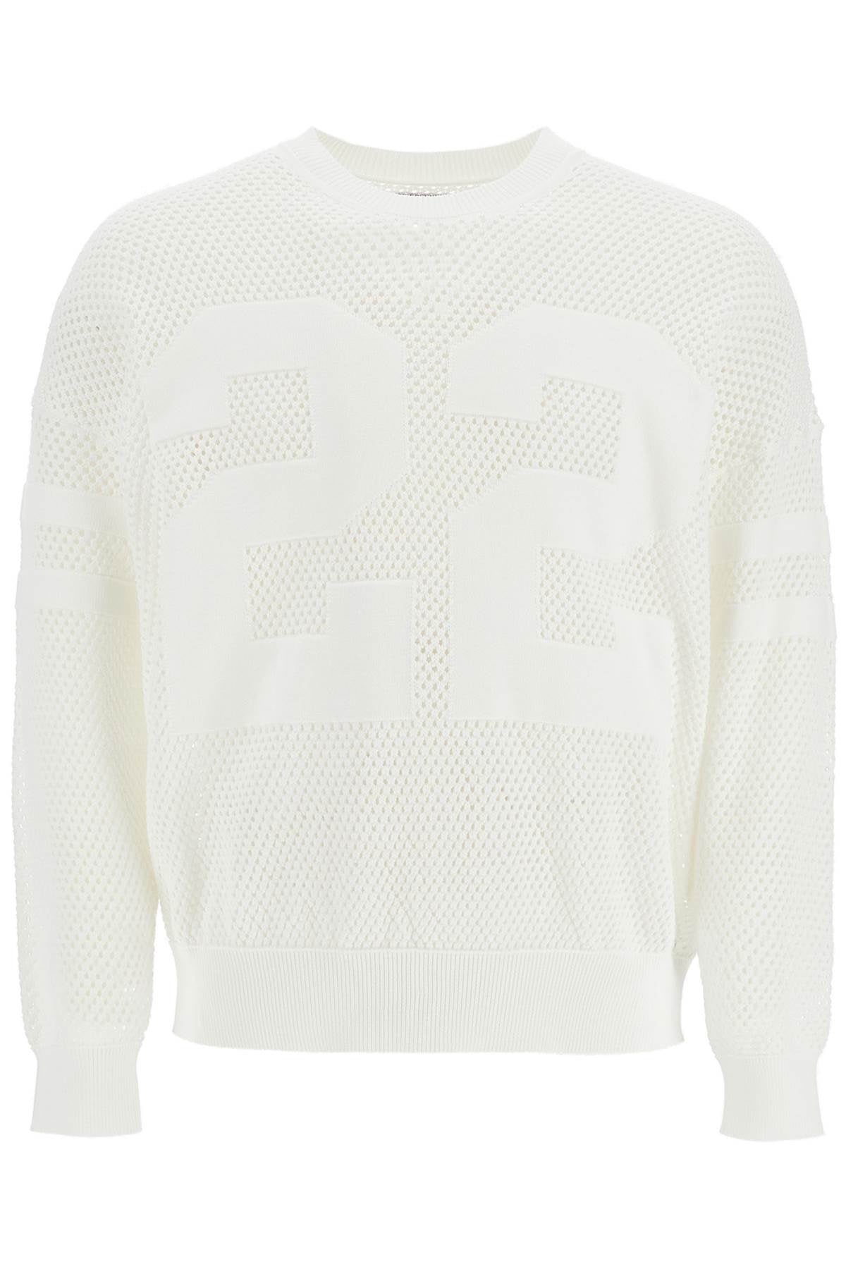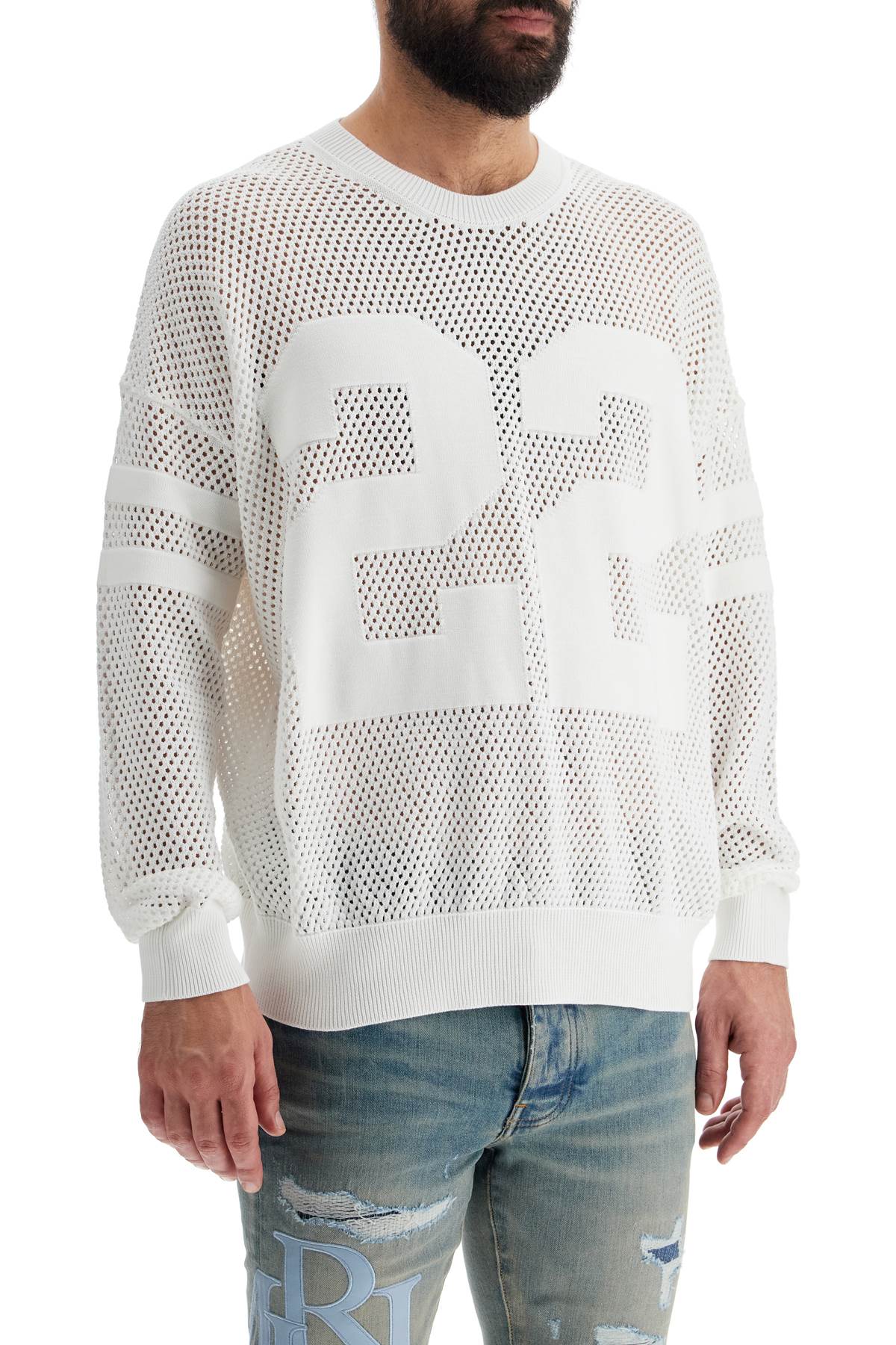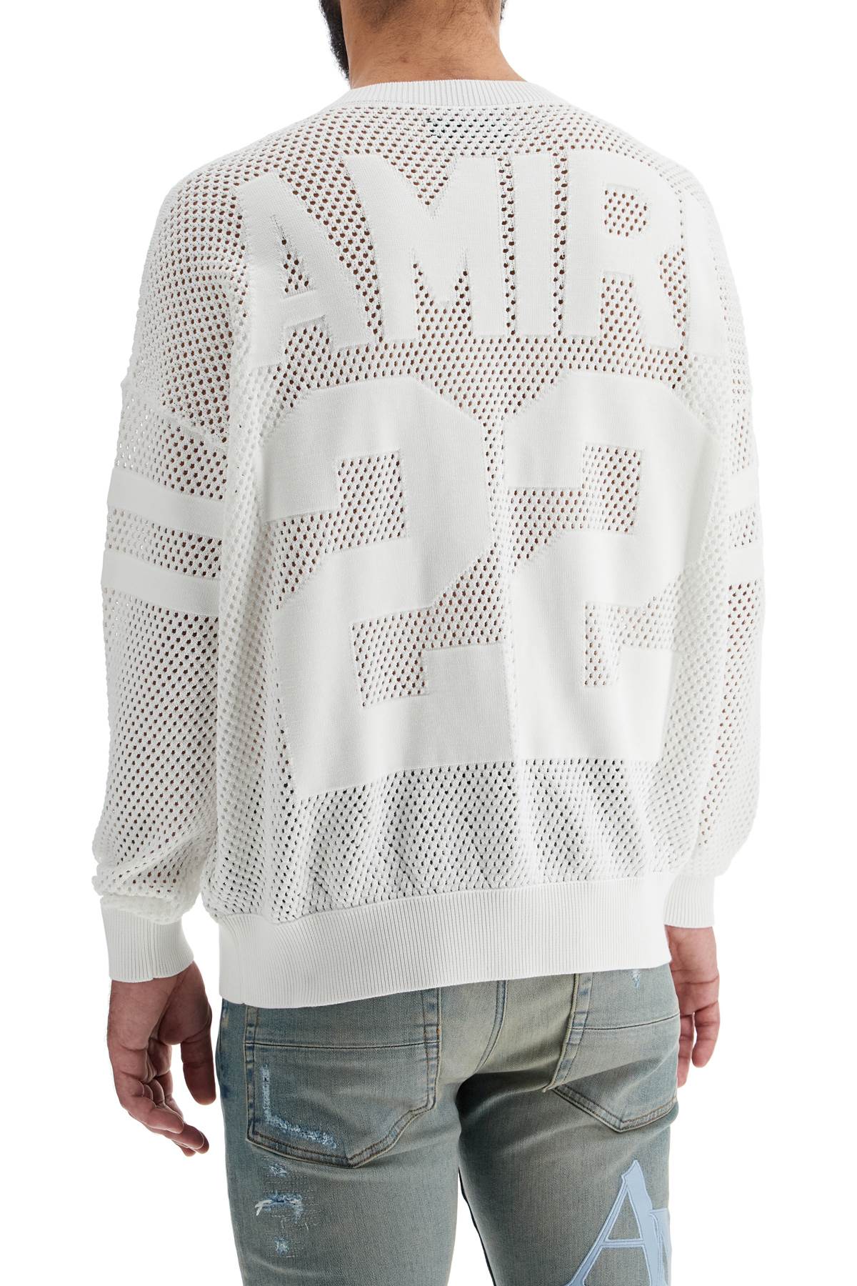 The Amiri crew neck shirt is made of pure cotton yarn and features a perforated design with sport-inspired graphic patterns, complete with a logo on the back. The loose and boxy cut is finished with ribbed edges. The model is 187 cm tall and wears a size M.