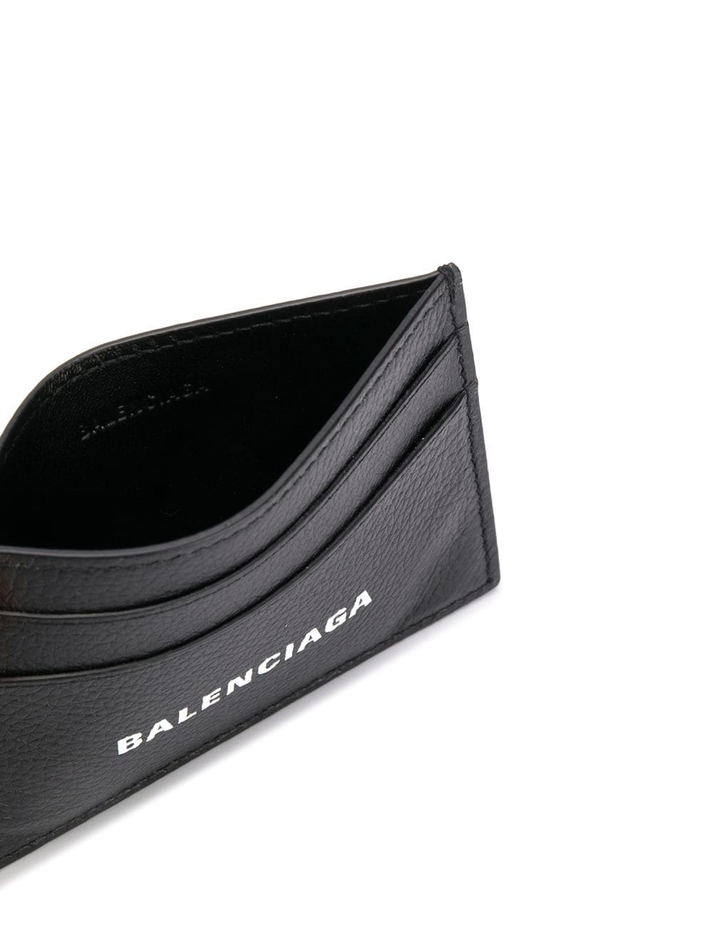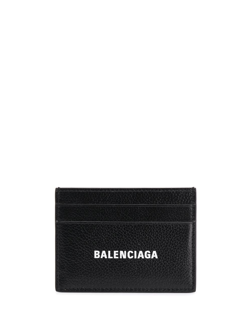 Black/white leather logo print cardholder from BALENCIAGA featuring card slots, front pouch pocket and embossed logo to the front. Size and Fit - Width 3,94 in / 10 cm Height 2,91 in / 7,4 cm