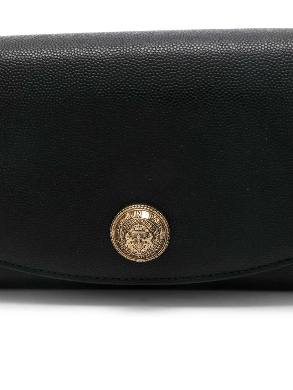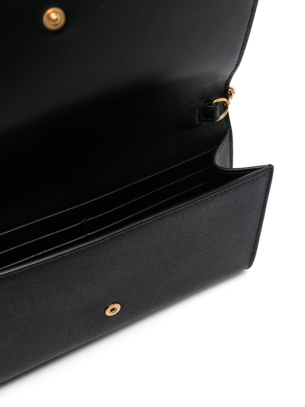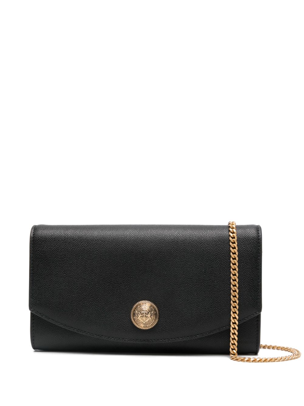 black calf leather grained texture foldover top with press-stud fastening chain-link shoulder strap gold-tone logo plaque main compartment internal slip pocket internal card slots leather lining Size and Fit - DEPTH: 3.0 Centimetres. HEIGHT: 10.0 Centimetres. STRAP: 111.0 Centimetres. WIDTH: 20.0 Centimetres.