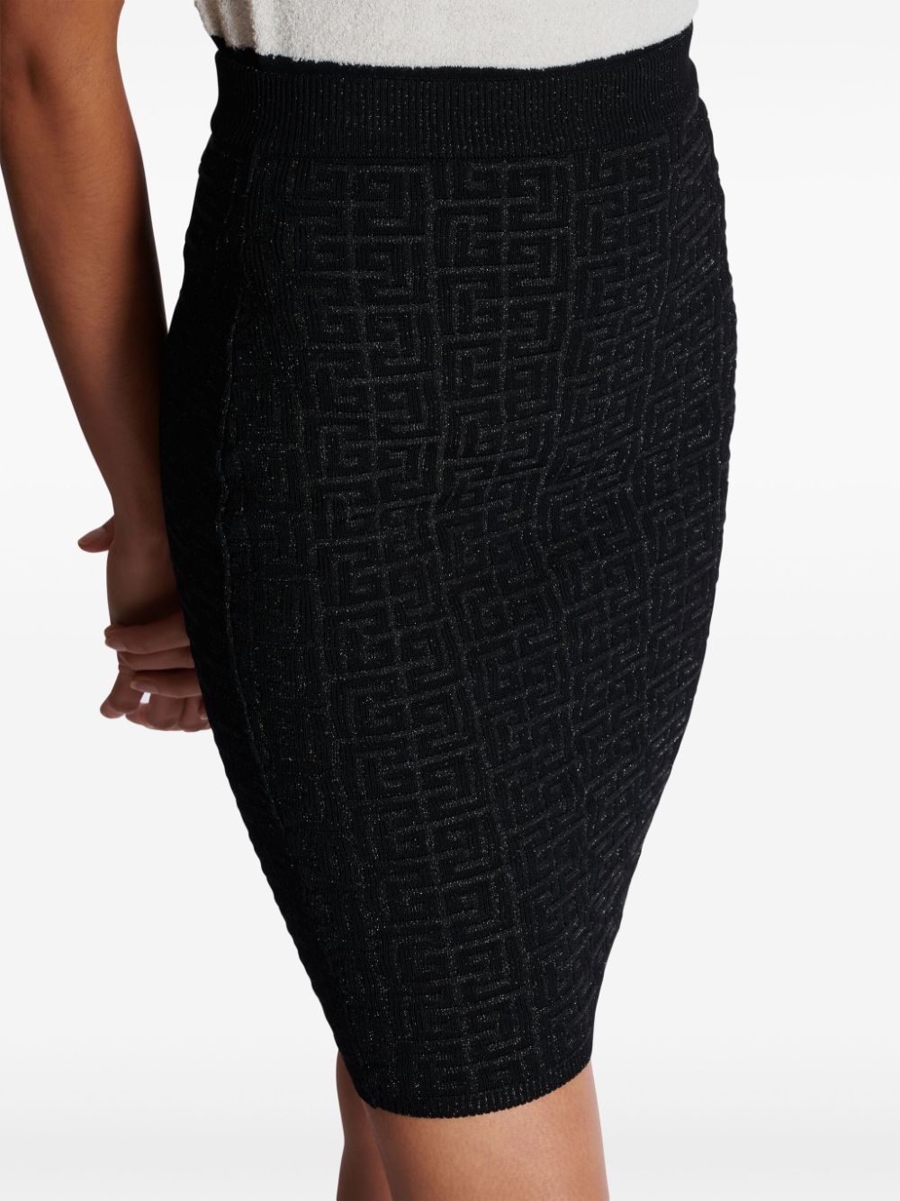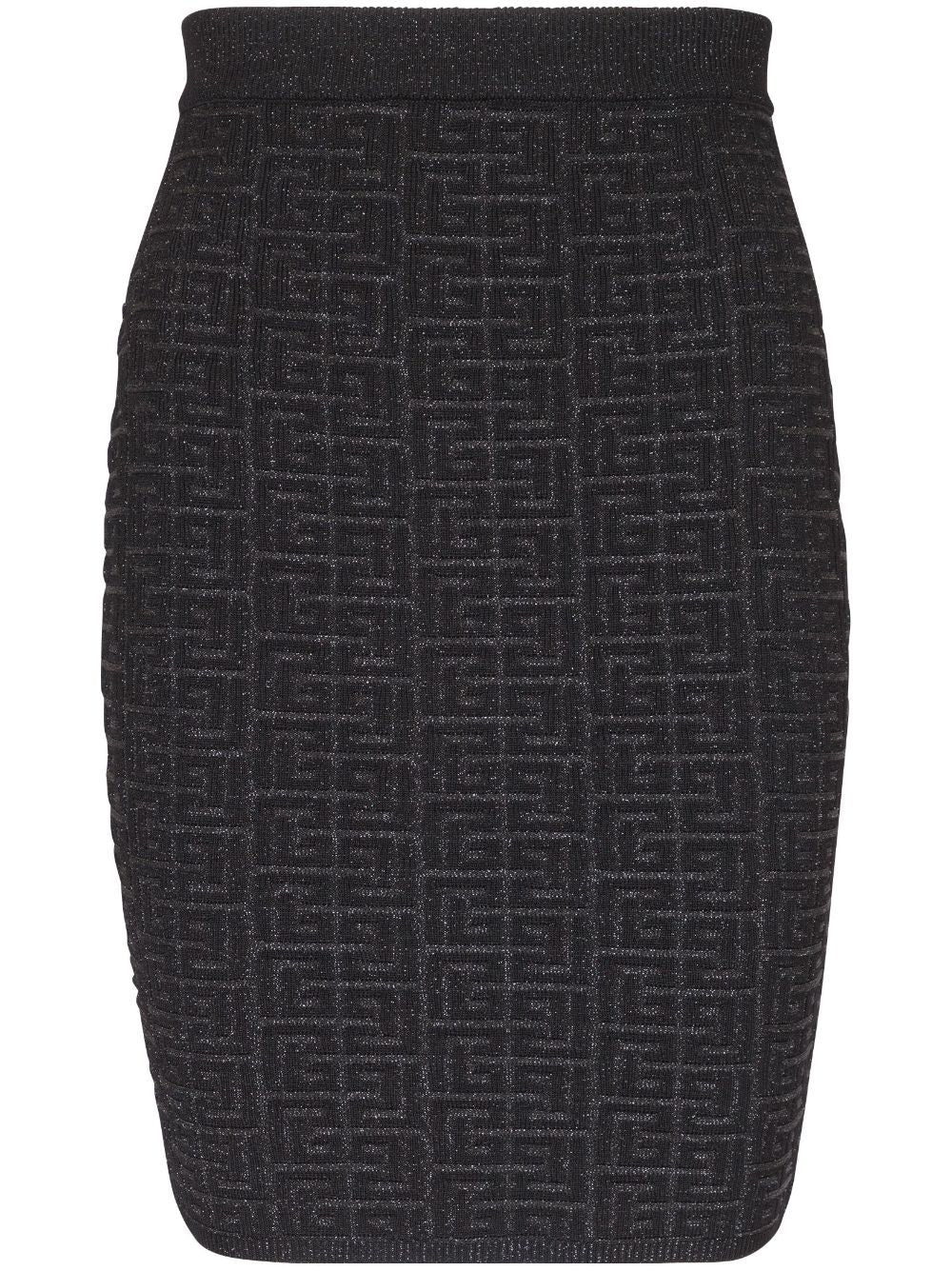 black knitted construction glitter detailing intarsia-knit logo ribbed waistband rear zip fastening above-knee length straight hem Size and Fit - This piece fits true to size. We recommend you get your regular size. Model is 1,75m / 5ft 8in wearing size 36 (FR)
