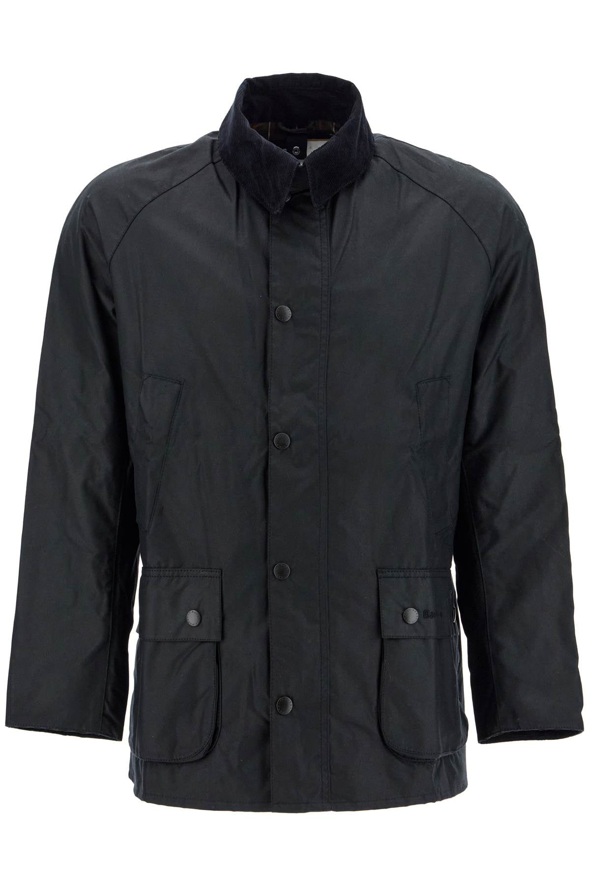 Barbour's Ashby jacket is made from matte-finish waxed cotton to a straight silhouette with raglan sleeves. Featuring two snap-flap gusset pockets and two handwarmer pockets, it fastens with a double-slider zipper and a snap flap. The corduroy collar can be raised for added protection and secured with a snap tab. Signature tartan cotton lining, an inside pocket. The model is 187 cm tall and wears a size L.