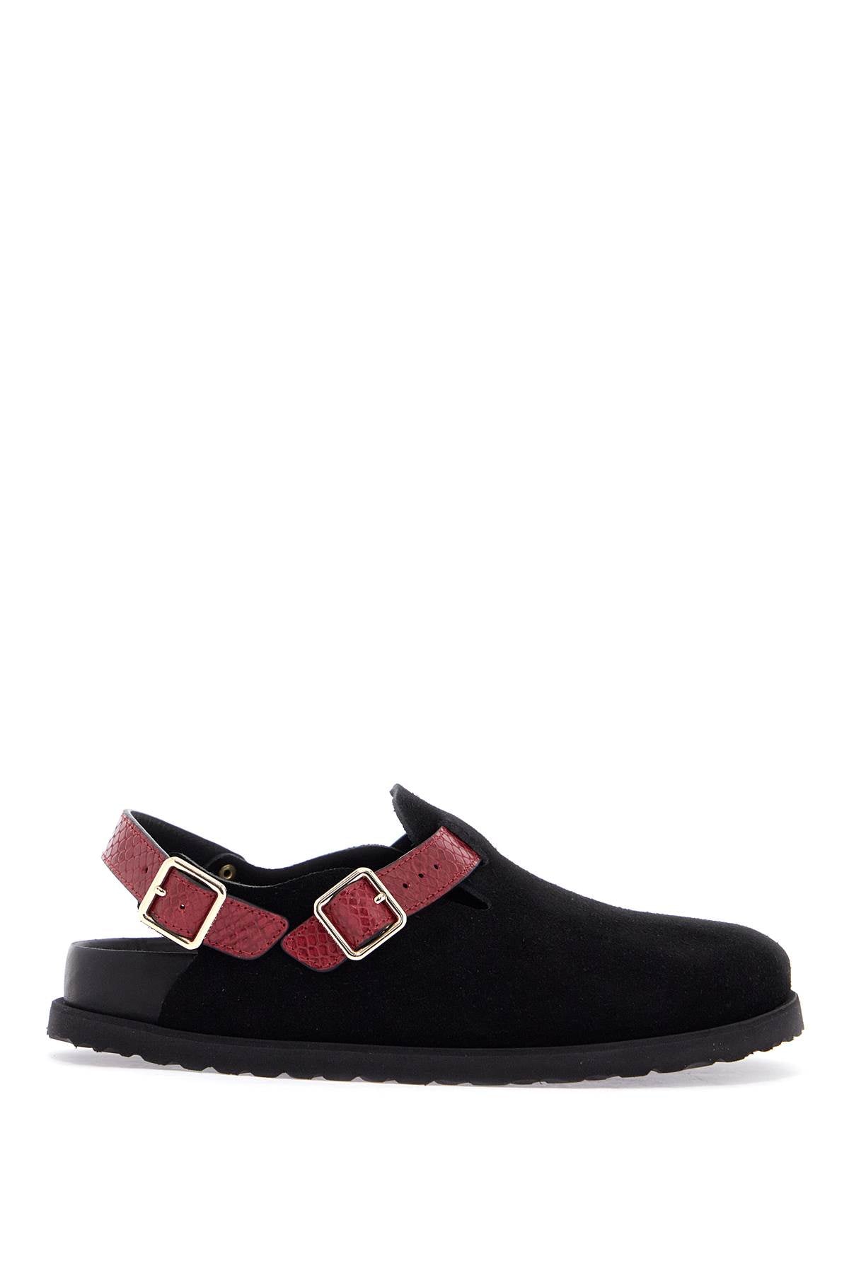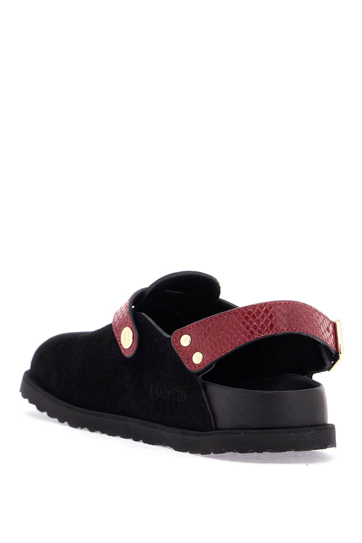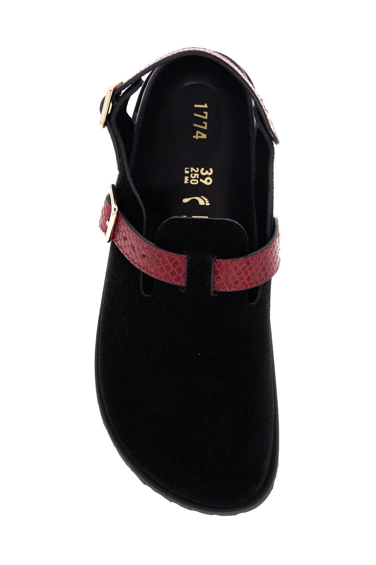 The Tokio II Lined clogs from the Birkenstock 1774 collection are made of suede leather and adorned with adjustable snake print leather straps. They feature an anatomical cork and latex footbed covered in leather, as well as a cut-out EVA sole. Size and Fit - Heel Height = 2 cm,