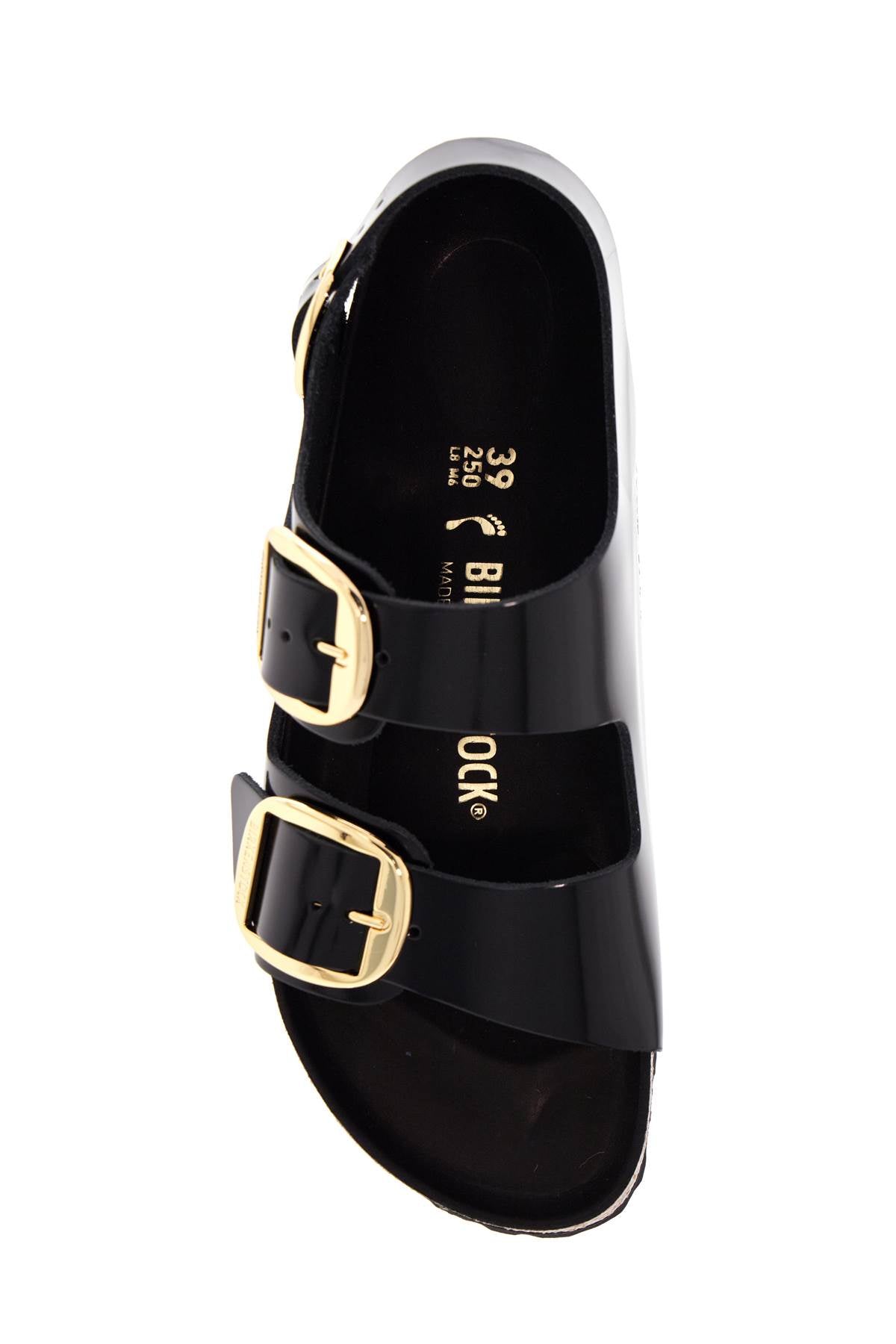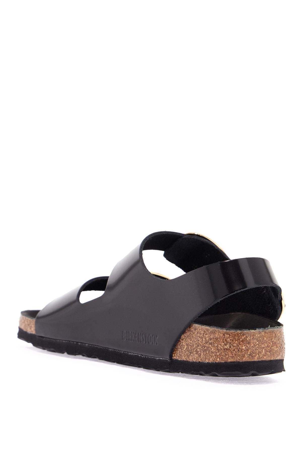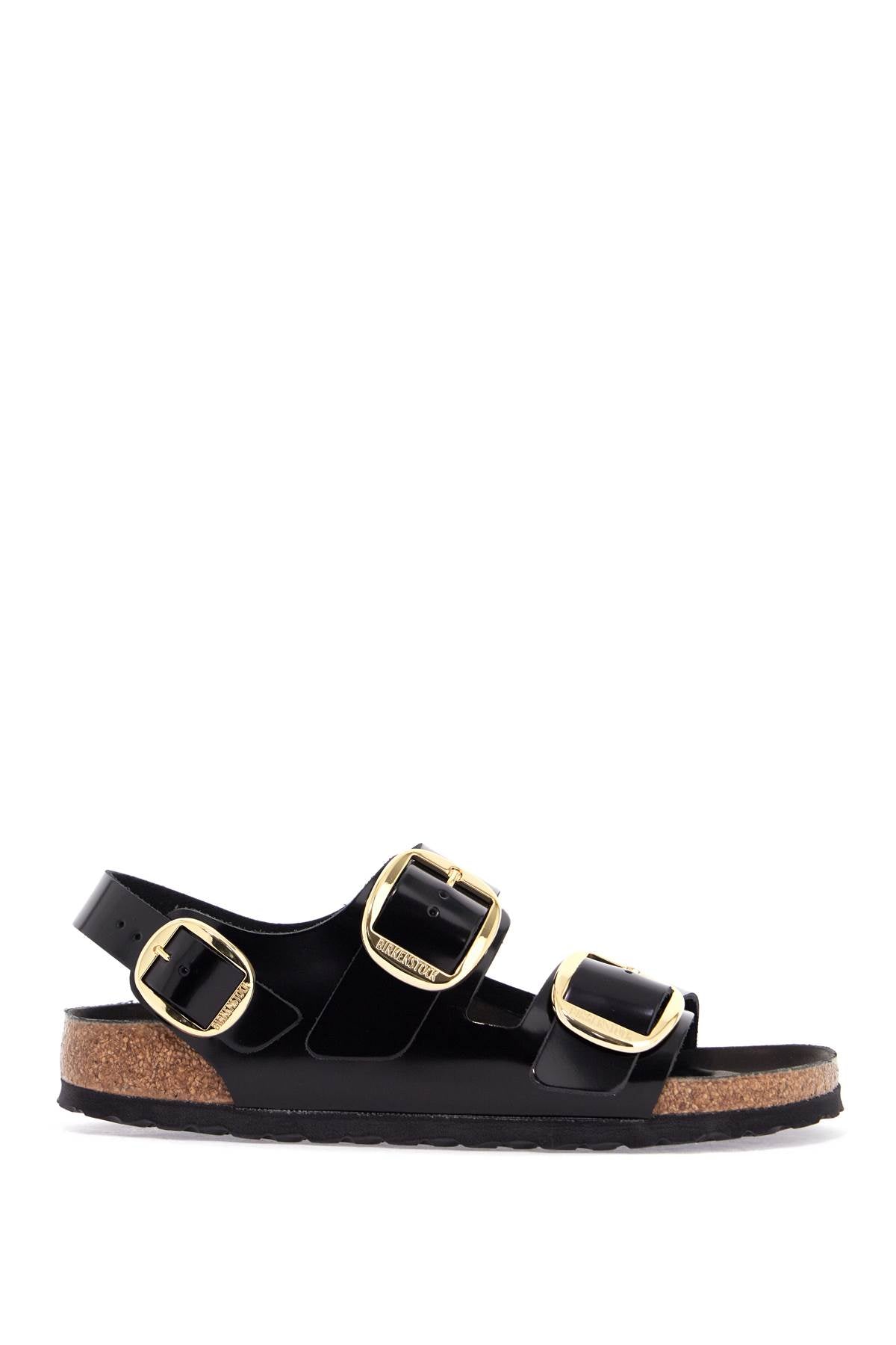 The Birkenstock Milano Big Buckle sandals offer elegance and comfort. Shiny black leather, oversized gold buckles, and an anatomical cork footbed for a sophisticated look and optimal support. Perfect for the woman who loves style and comfort.