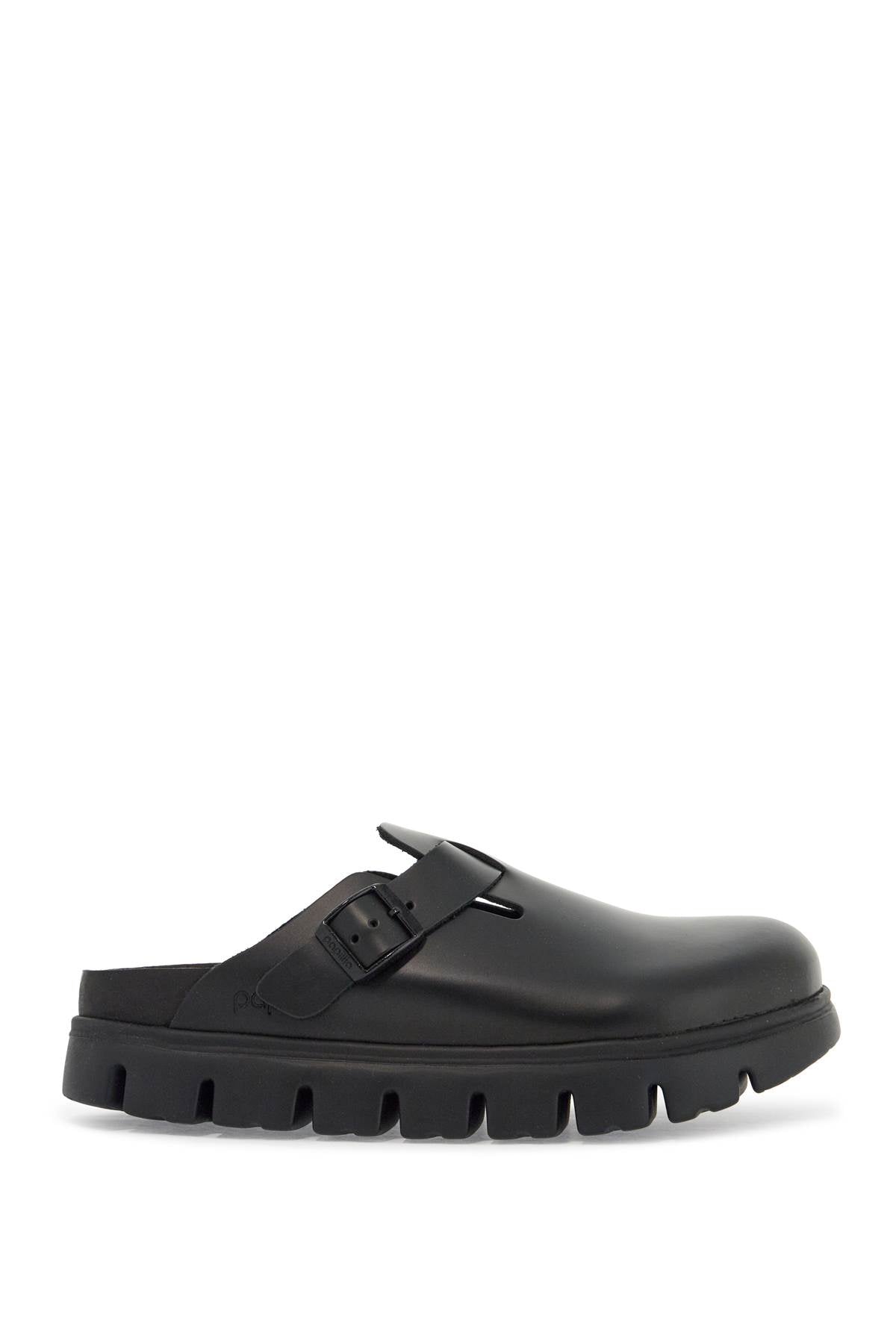 Birkenstock boston chunky slipper in black natural leather with serrated sole