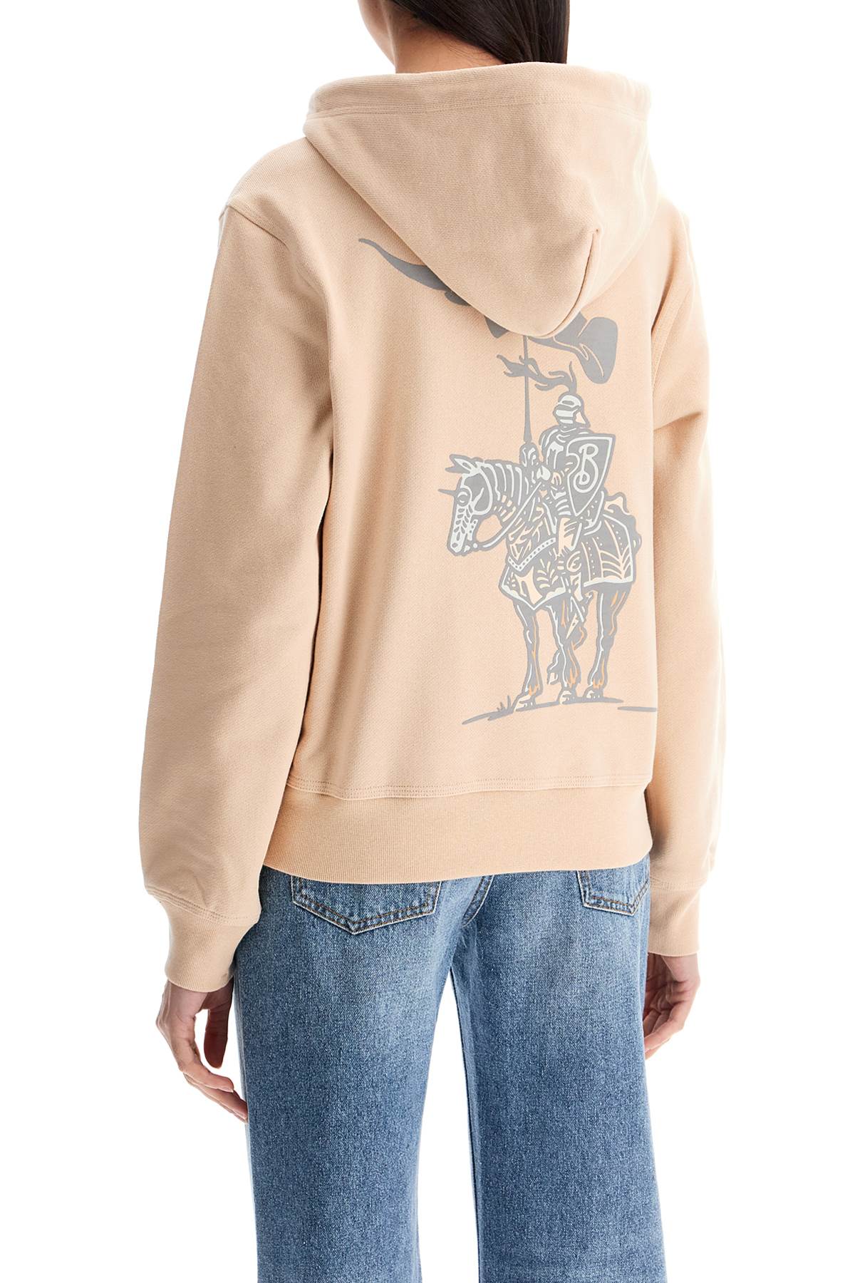 The Burberry oversized hoodie offers casual elegance in premium cotton. Relaxed design with adjustable hood and front zip. Iconic illustration on the back. Versatile for chic and comfortable looks.