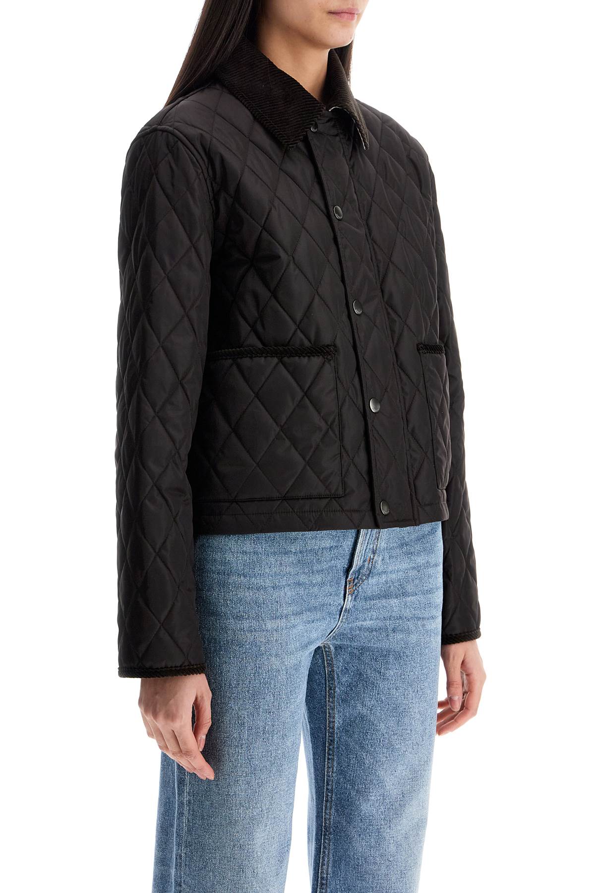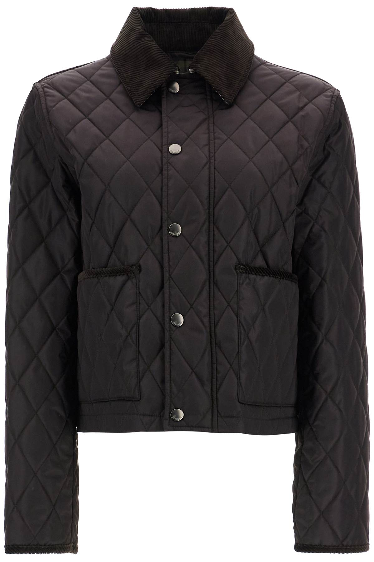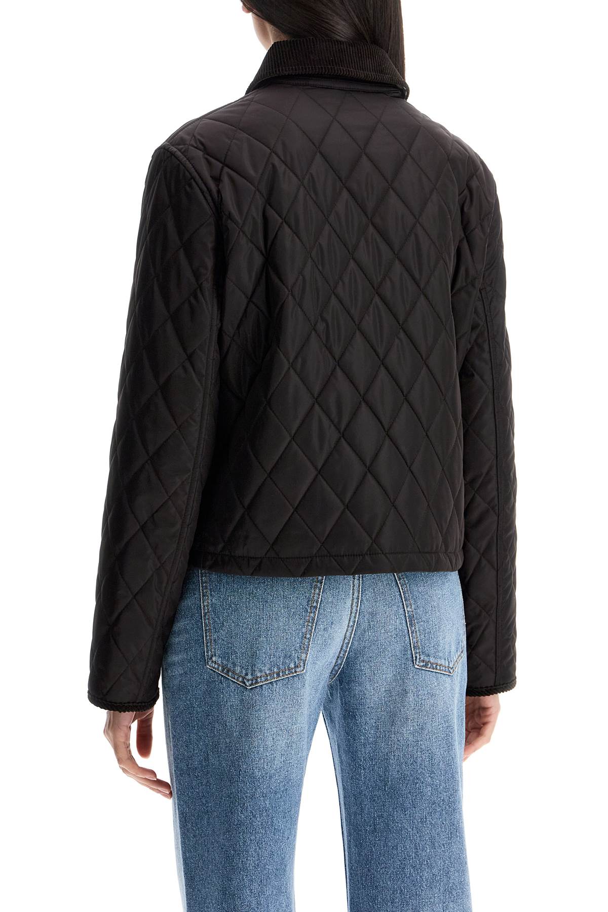 The Burberry women's jacket offers contemporary elegance. Black quilted nylon, cropped design with velvet collar. Perfect for spring summer 2025, combining style and comfort.