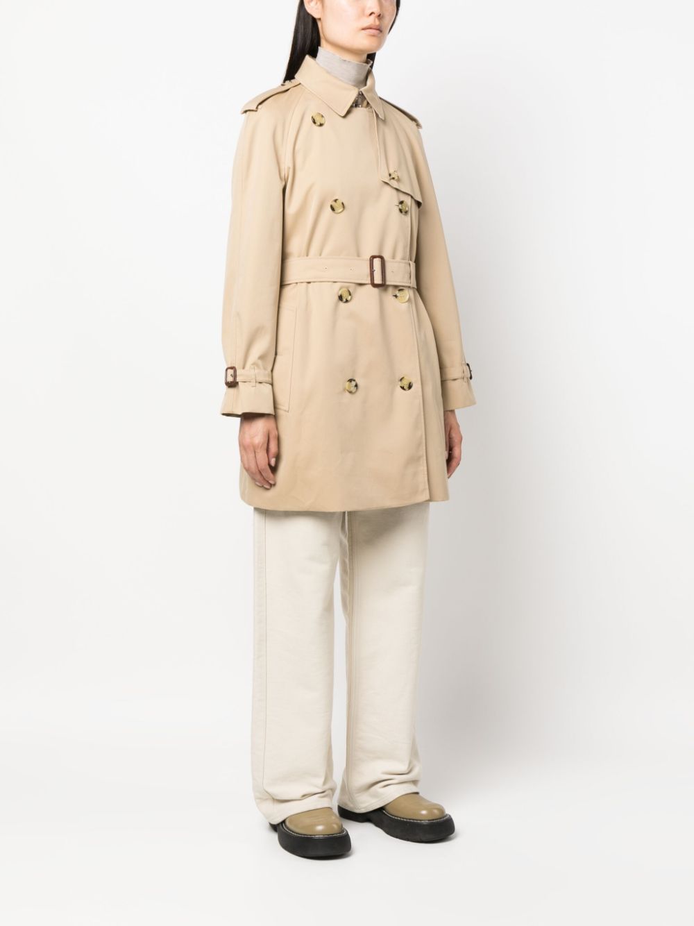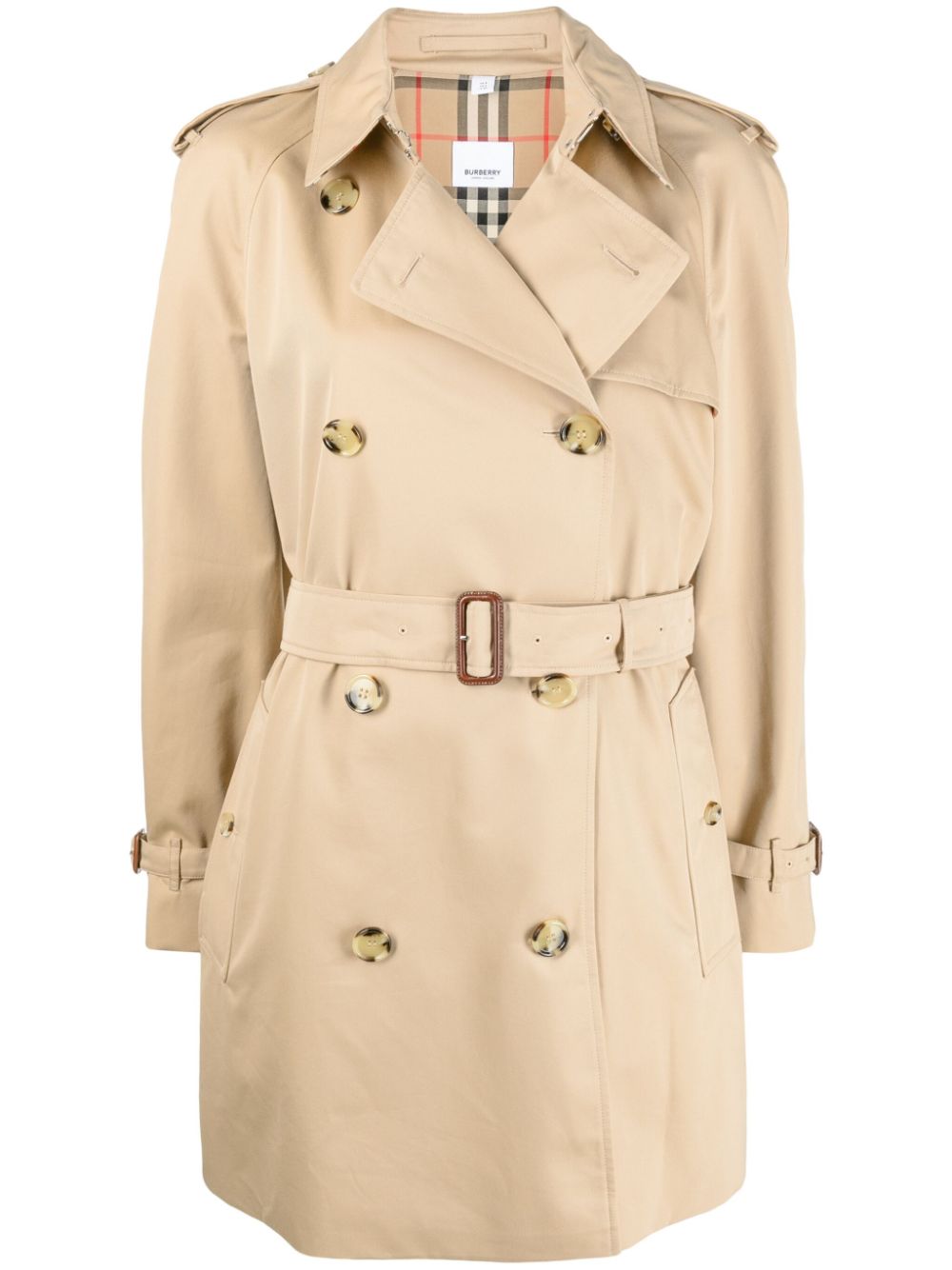 cotton gabardine trench coat from BURBERRY featuring archive beige, cotton, Vintage Check-pattern lining, classic collar, double-breasted button fastening, belted waist, long sleeves, central rear vent and straight hem. Size and Fit - This piece fits true to size. We recommend you get your regular size. Model is 1,75m / 5ft 8in wearing size 8 (UK)