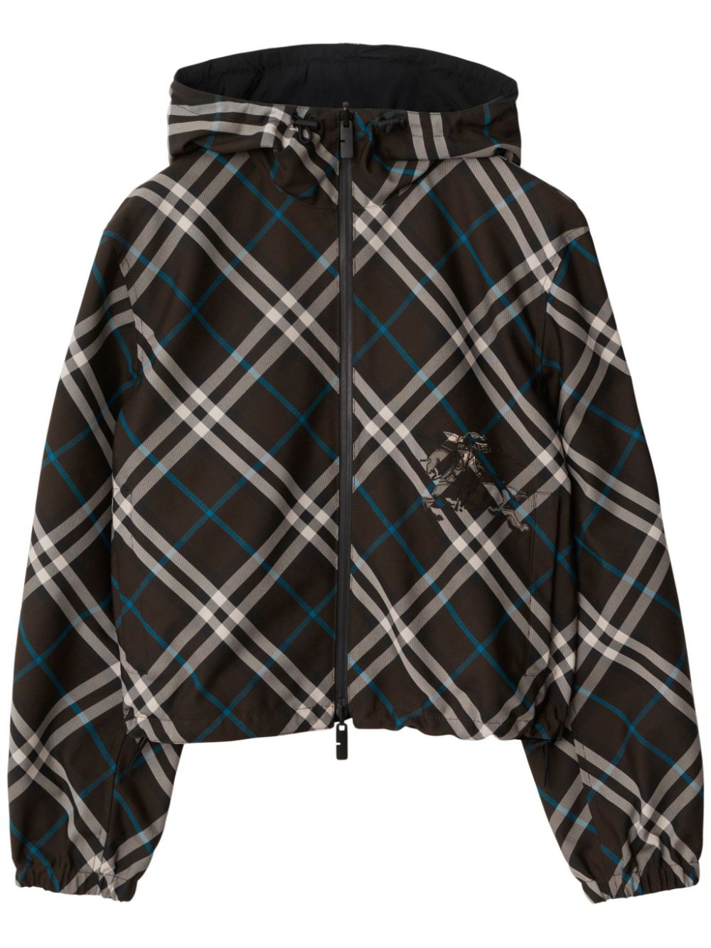 black/multicolour reversible check print signature Equestrian Knight motif classic hood front two-way zip fastening drop shoulder long sleeves elasticated cuffs two side welt pockets straight hem Size and Fit - This piece fits true to size. We recommend you get your regular size. Model is 1,75m / 5ft 8in wearing size S