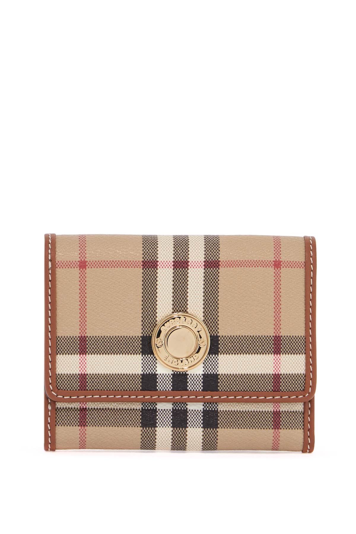 Burberry compact beige tartan wallet in polyurethane with gold buttons
