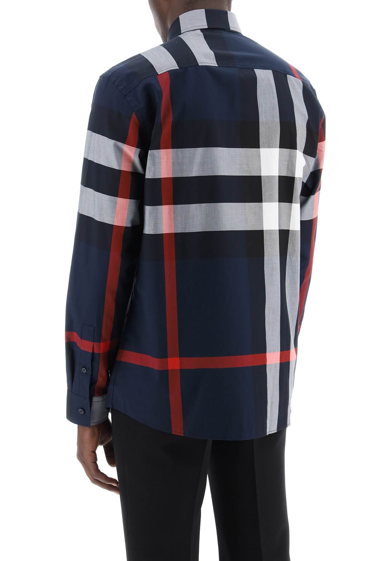 Made of organic cotton poplin, this long-sleeved shirt showcases an oversized version of the signature Burberry Check motif. It comes in a slim fit with a spread collar and French placket, in addition to a chest pocket, classic barrel cuffs and a slightly curved hemline. The model is 187 cm tall and wears a size L.