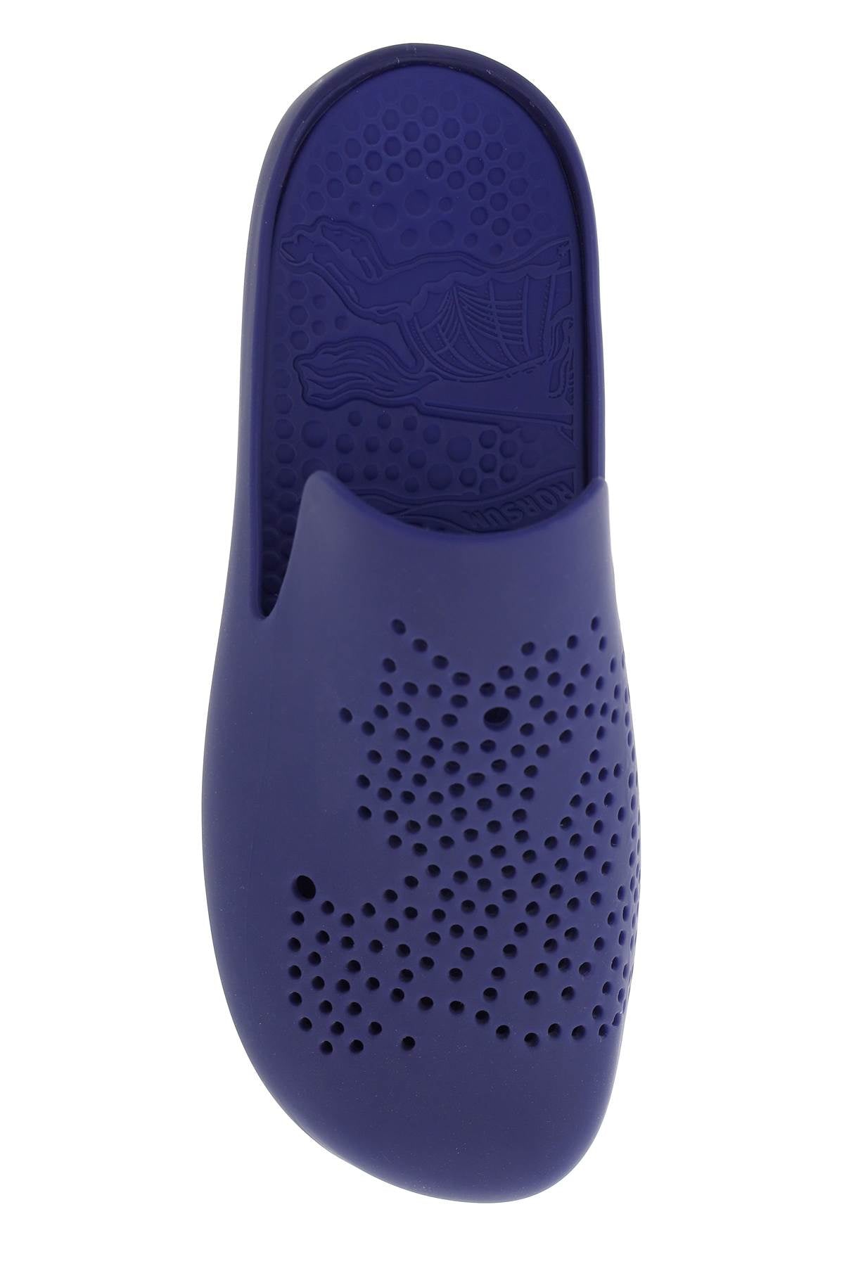 The Burberry Stingray Clogs are made entirely of rubber with a perforated Equestrian Knight Design logo and a removable charm. Size and Fit - Heel Height = 2,5 cm,