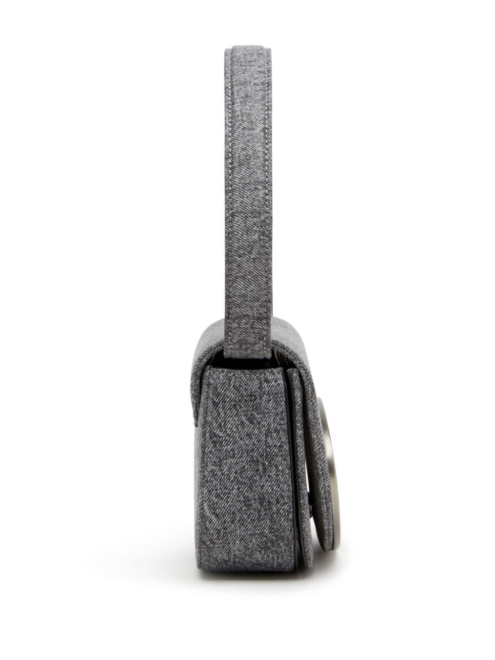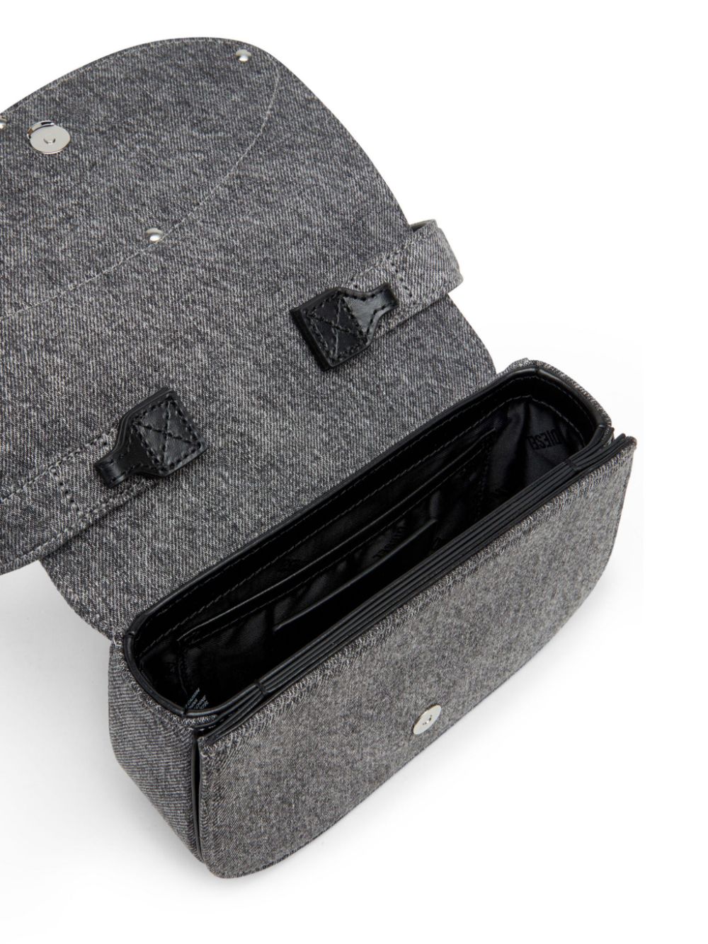 heather grey foldover top with magnetic fastening single rolled top handle adjustable shoulder strap multiple internal slip pockets Size and Fit - Width 8,07 in / 20,5 cm Height 4,72 in / 12 cm Depth 2,36 in / 6 cm
