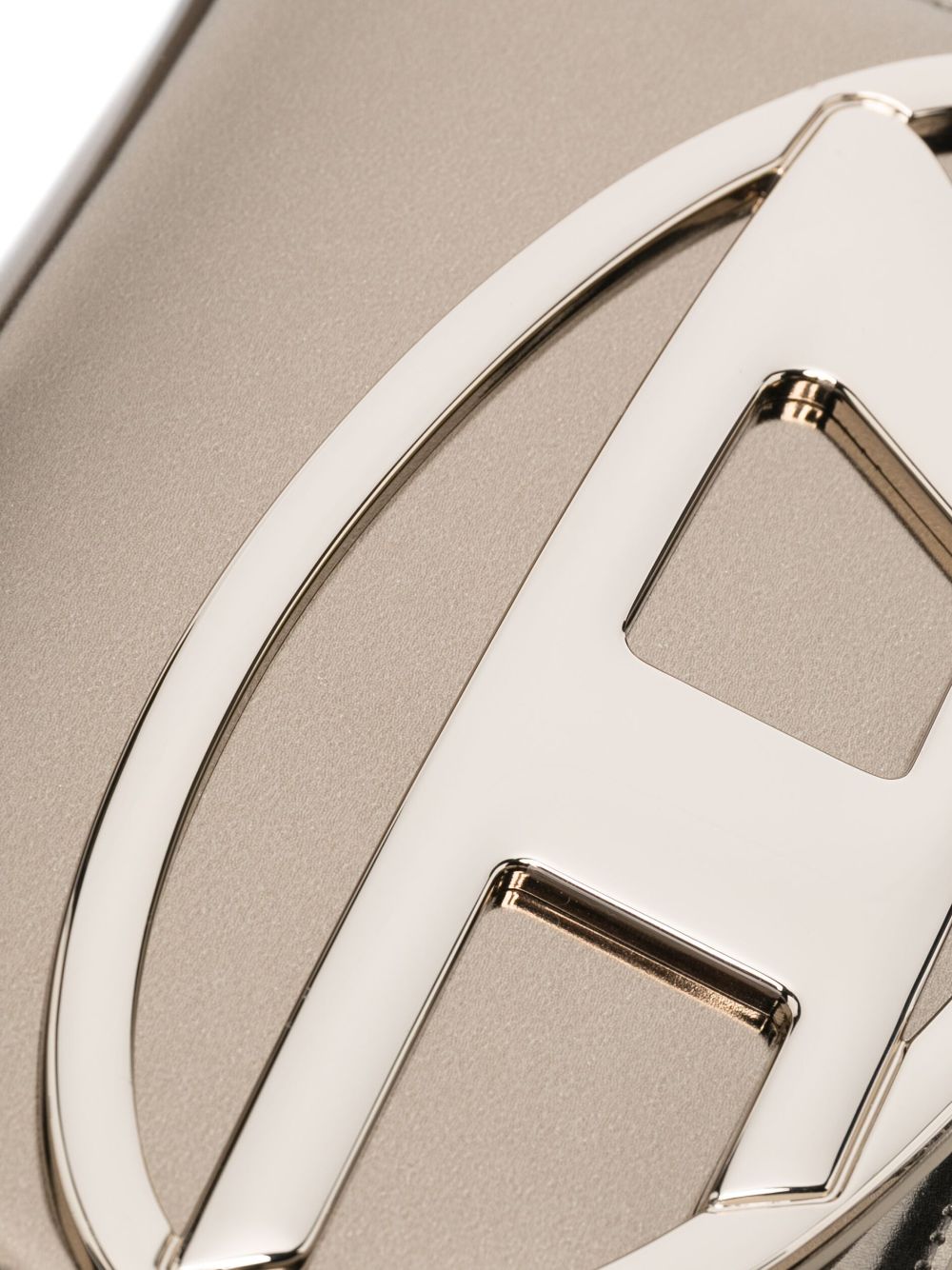 1DR mirrored-leather shoulder bag from DIESEL featuring gold-tone, calf leather, patent finish, logo plaque, single flat top handle, foldover top with magnetic fastening, detachable shoulder strap, main compartment, internal logo patch and internal slip pocket. Size and Fit - Width 7,87 in / 20 cm Height 4,72 in / 12 cm Depth 1,97 in / 5 cm Handle 7,87 in / 20 cm Strap 21,65 in / 55 cm