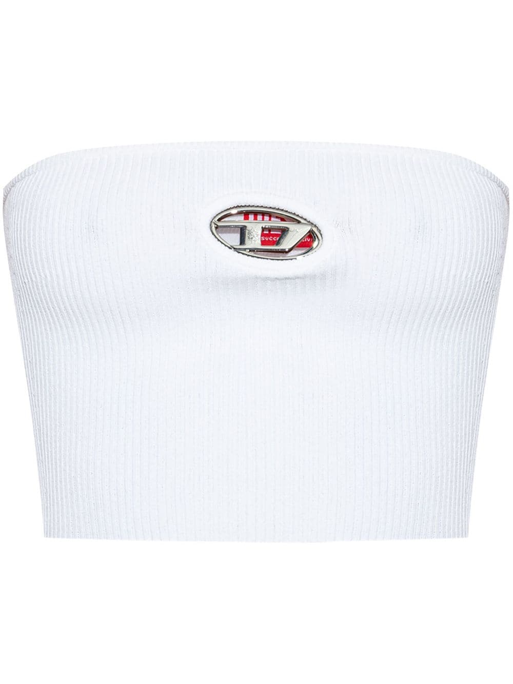 white ribbed knit Oval D logo plaque bandeau style strapless cropped straight hem Size and Fit - This piece fits true to size. We recommend you get your regular size. Model is 1,75m / 5ft 8in wearing size S