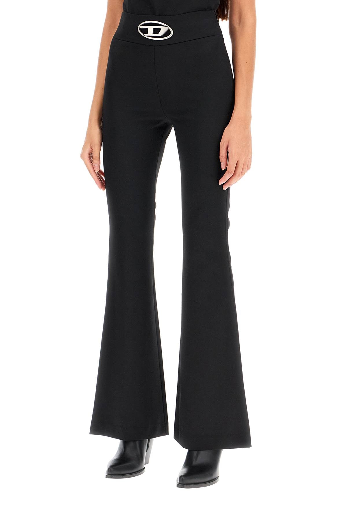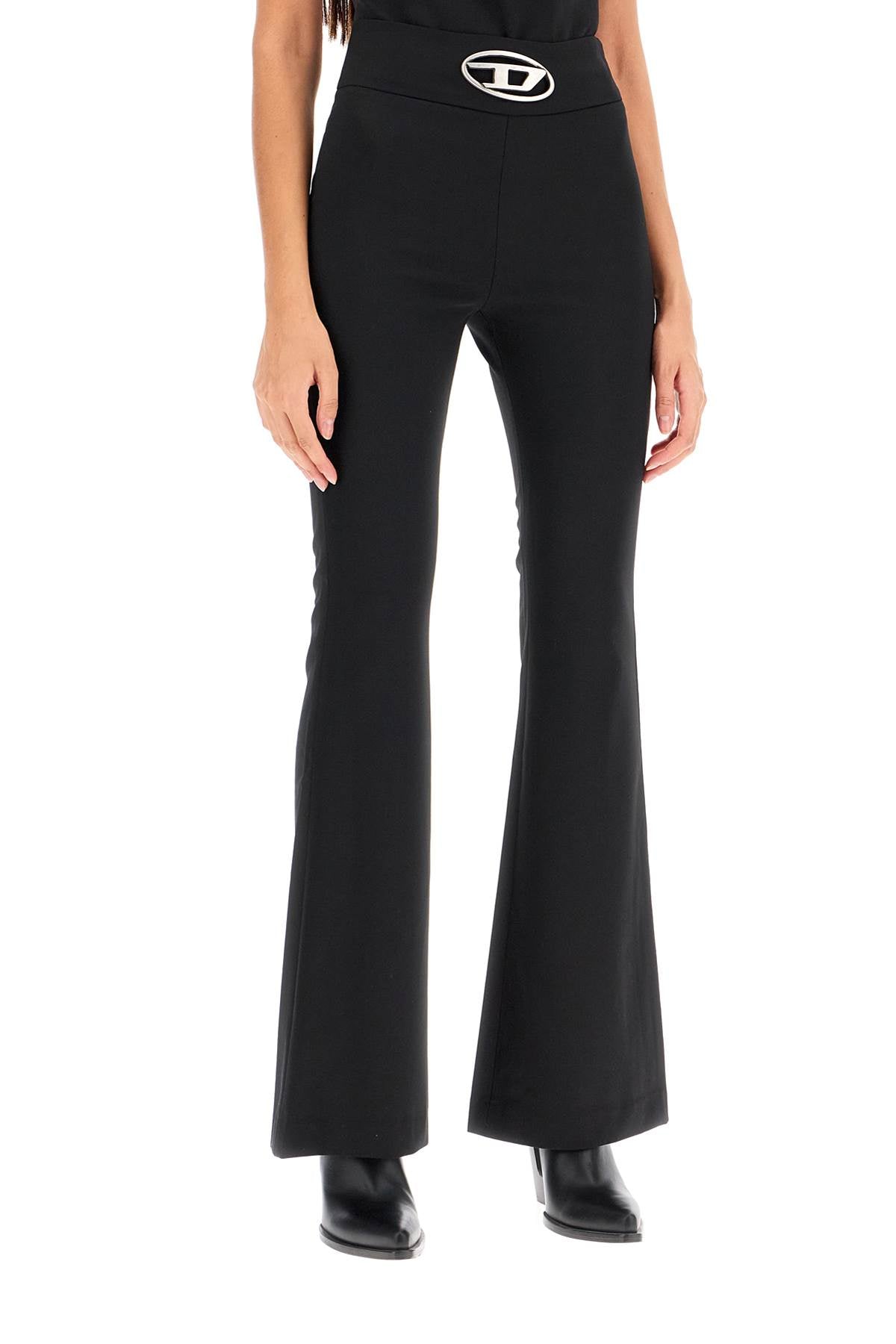 The Diesel P-Erseus pants are made of stretch wool twill and feature a high waist and flared leg. Completing the look is the iconic Oval D inlaid metal on the waist with a cut-out effect. The fit is snug. The model is 177 cm tall and wears size IT 38.