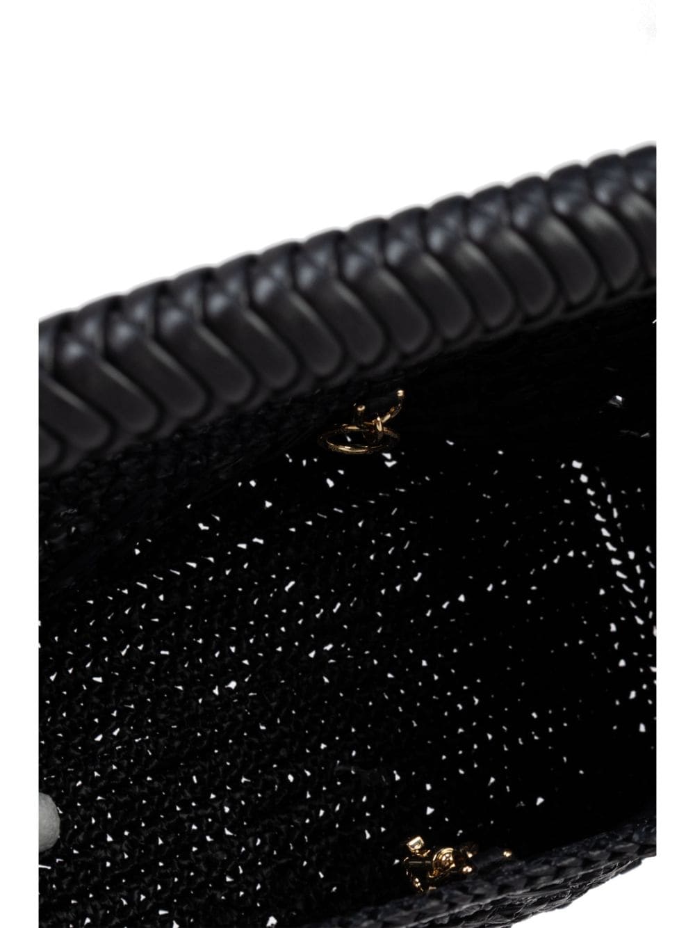 black interwoven design gold-tone logo plaque gold-tone hardware clasp fastening single braided top handle main compartment removable pouch Size and Fit - Width 14,17 in / 36 cm