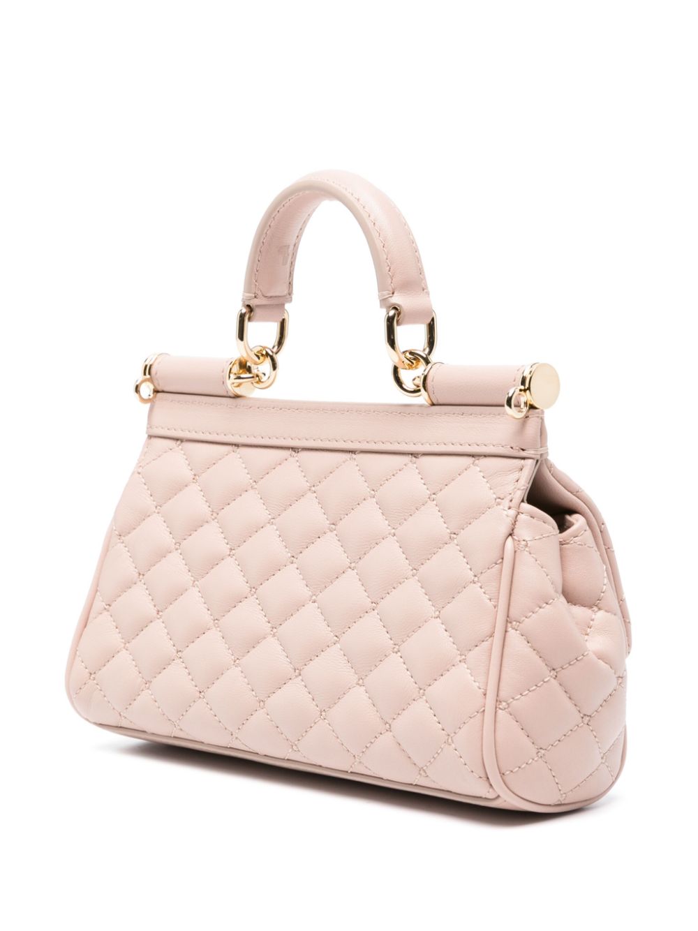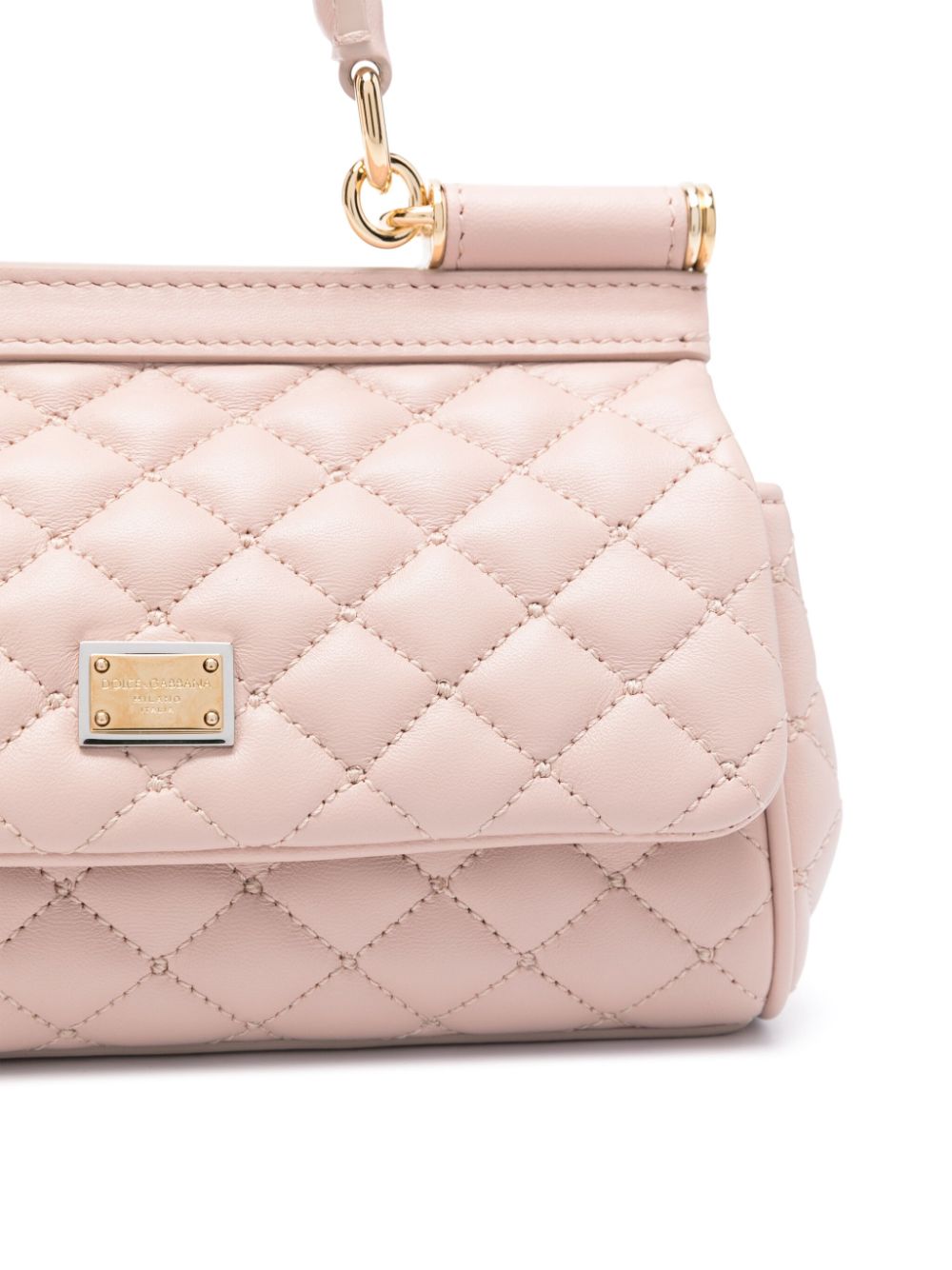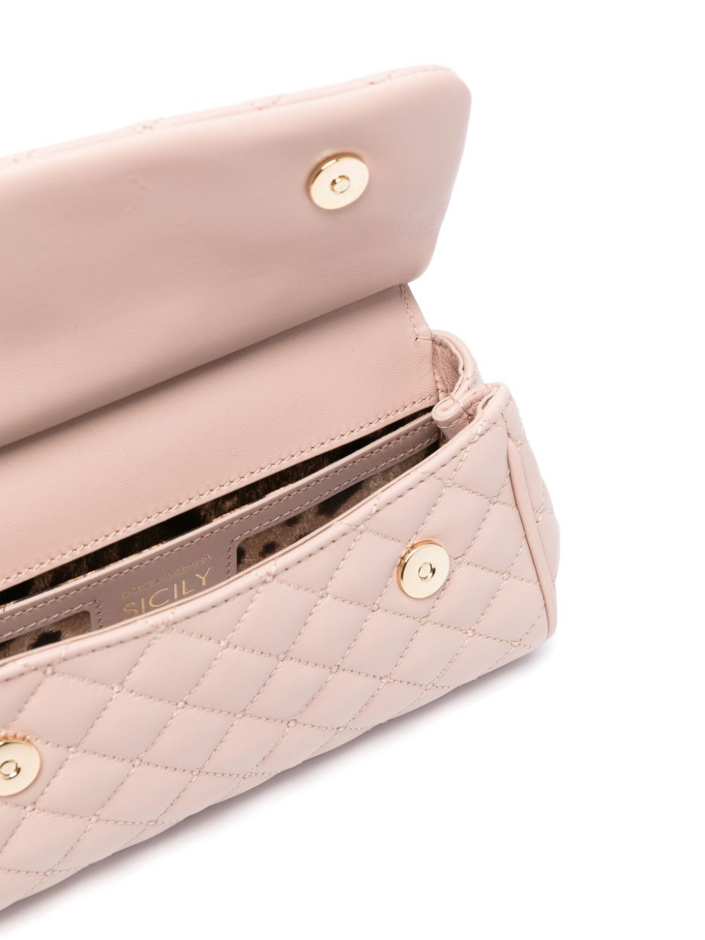 powder pink calf leather diamond quilting foldover top with magnetic fastening single top handle adjustable detachable shoulder strap logo plaque main compartment internal slip pocket leopard print lining Size and Fit - Width 7,68 in / 19,5 cm