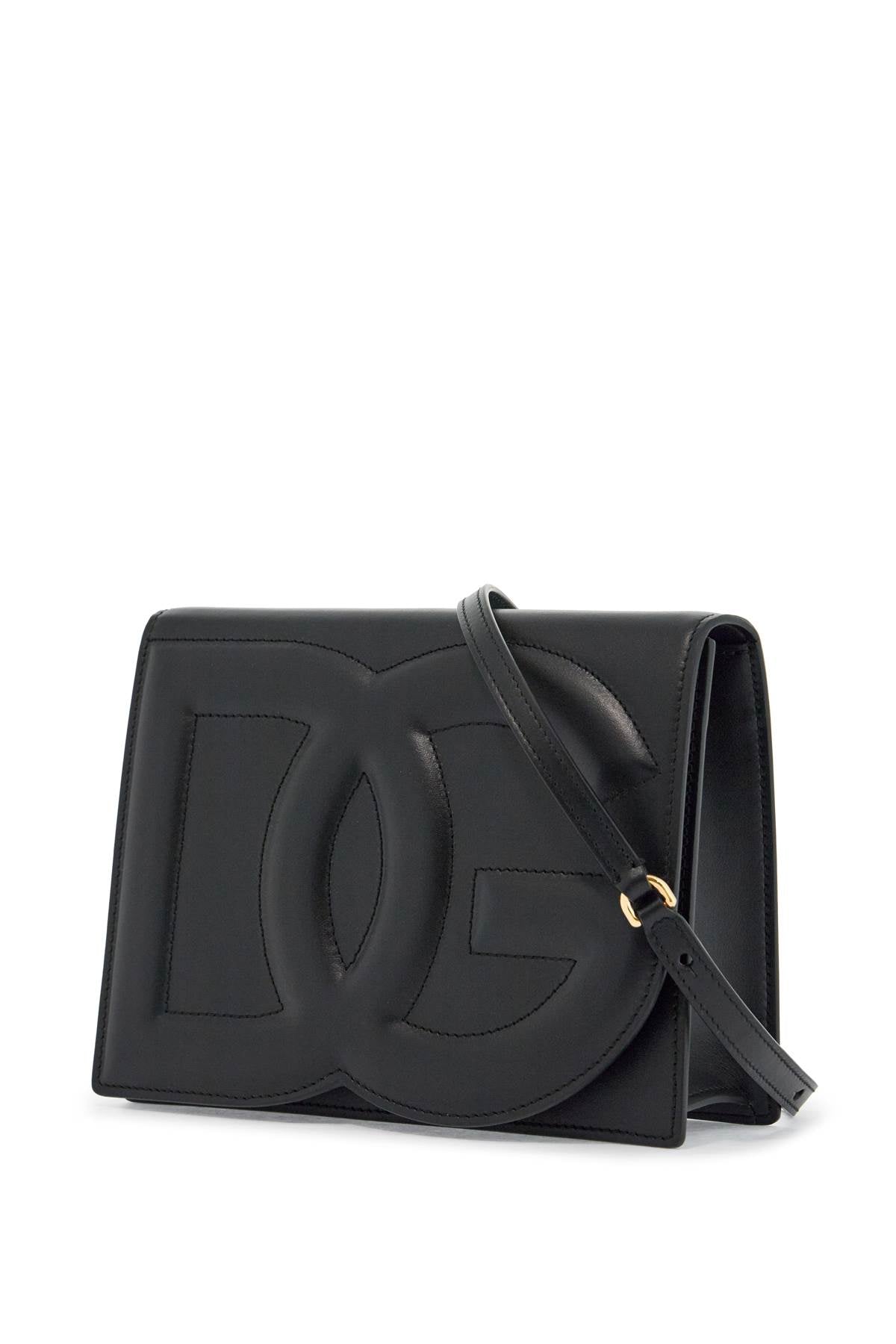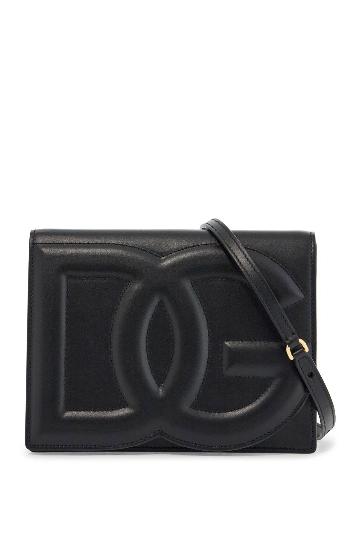 Dolce & Gabbana black calfskin shoulder bag with embossed logo and adjustable strap