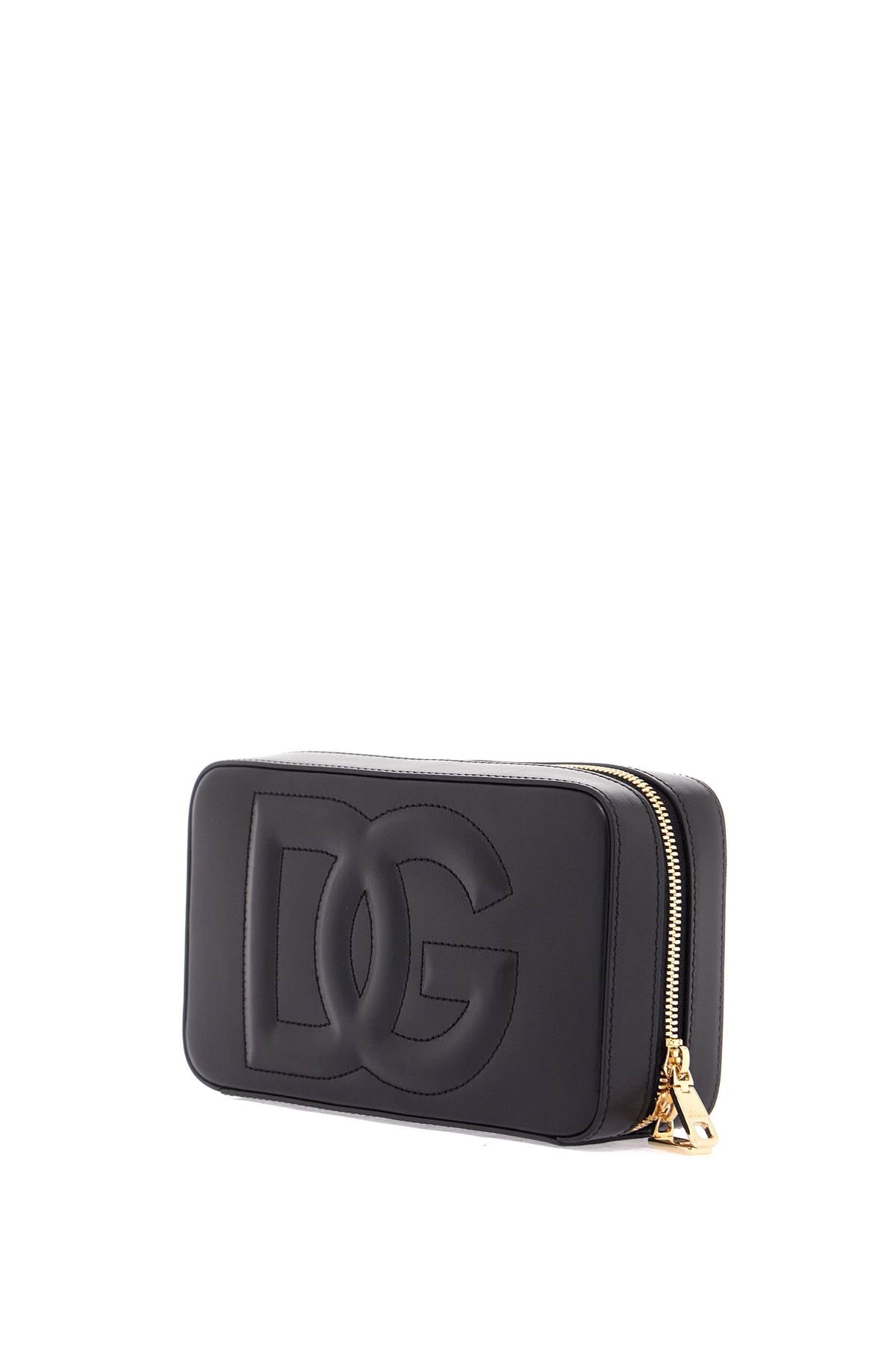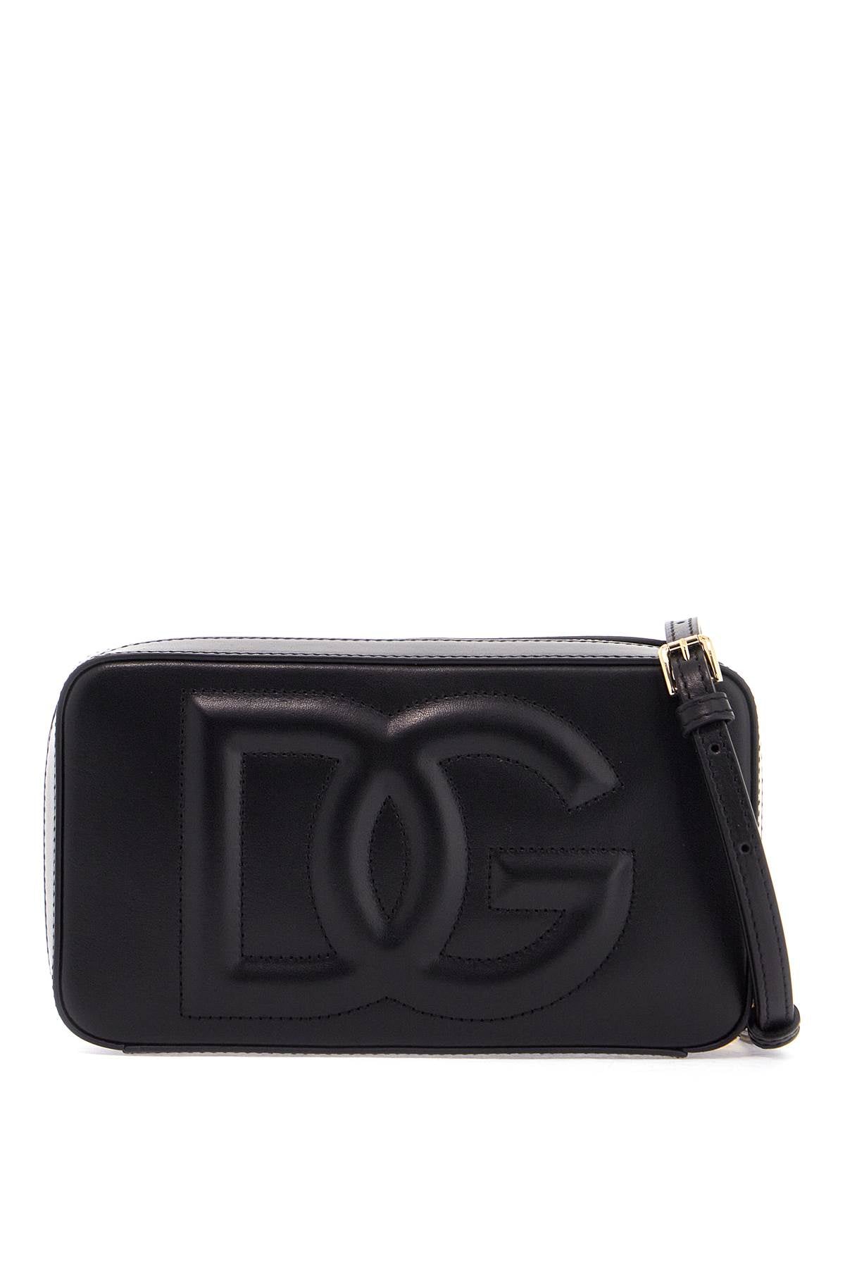 Dolce & Gabbana black calfskin shoulder bag with embossed logo and adjustable strap