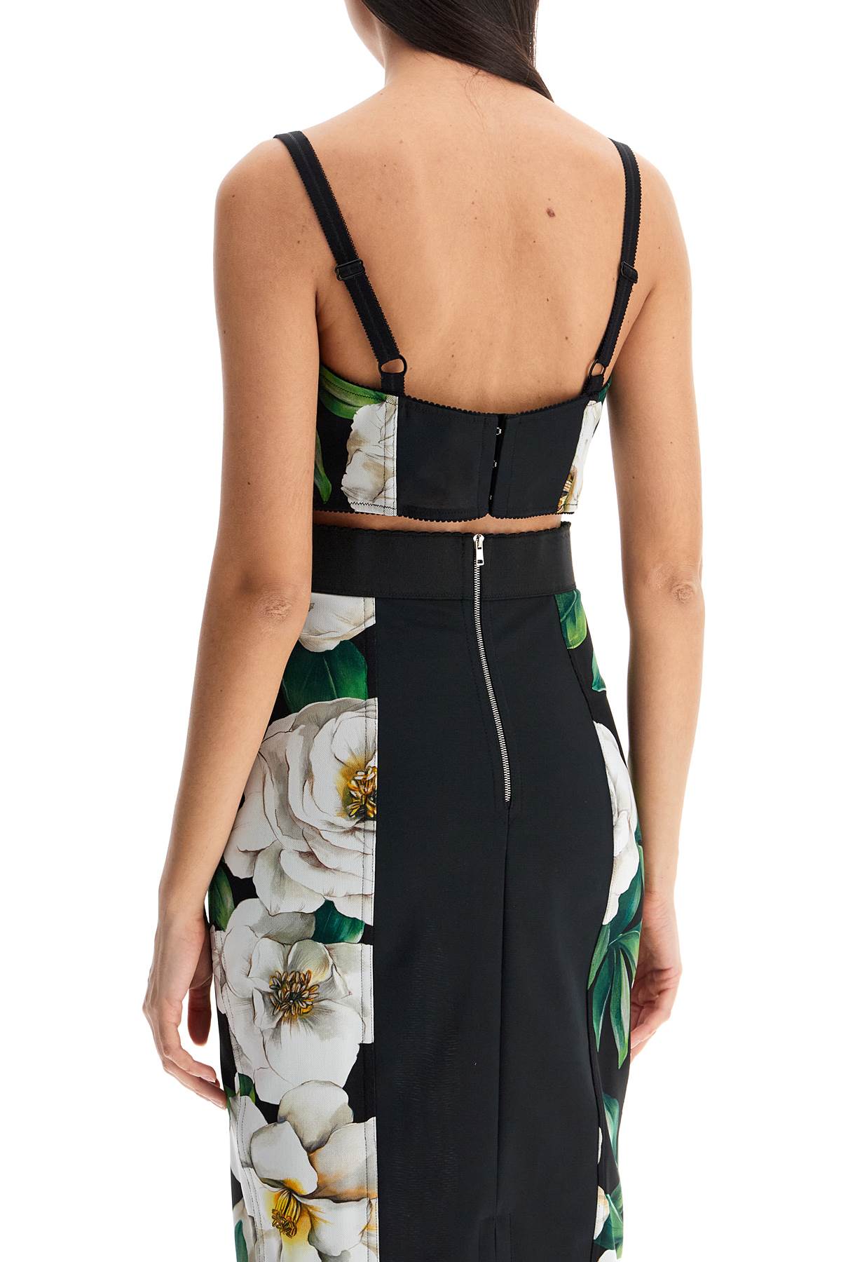 Dolce & Gabbana black polyamide bra with floral pattern and deep neckline