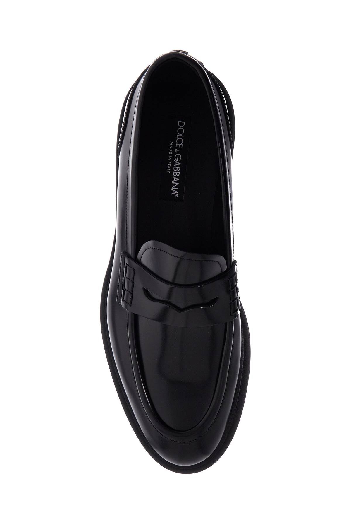 Dolce & Gabbana loafers from the Altavilla line, made of brushed leather and personalized with the DG logo in ruthenium finish on the heel. The design is minimalistic and features a leather lining and insole, as well as an ultra-light rubber sole. Size and Fit - Heel Height = 3 cm,