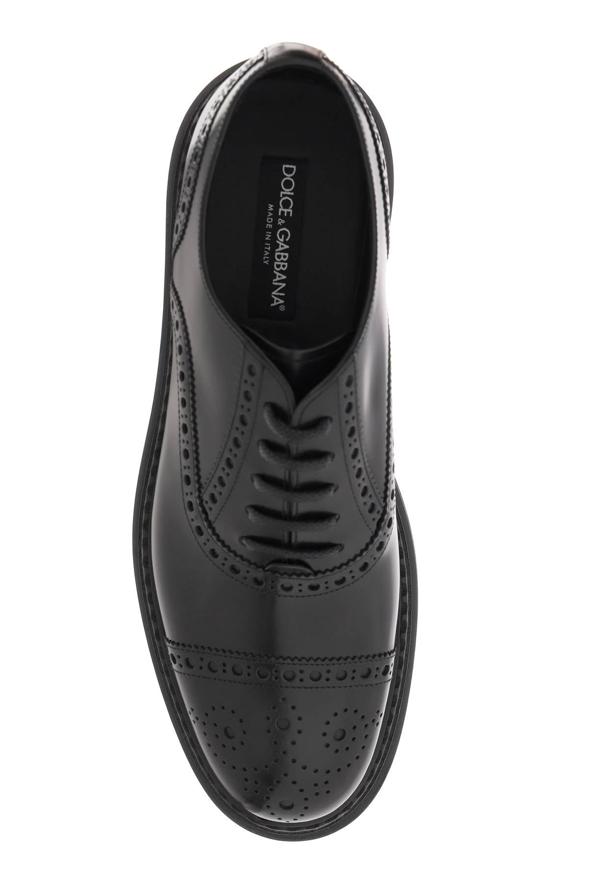 Oxford lace-ups by Dolce & Gabbana crafted in brushed leather with brogue detailing. Waxed laces, leather interior with logo label, rubber sole. Size and Fit - Heel Height = 5 cm,