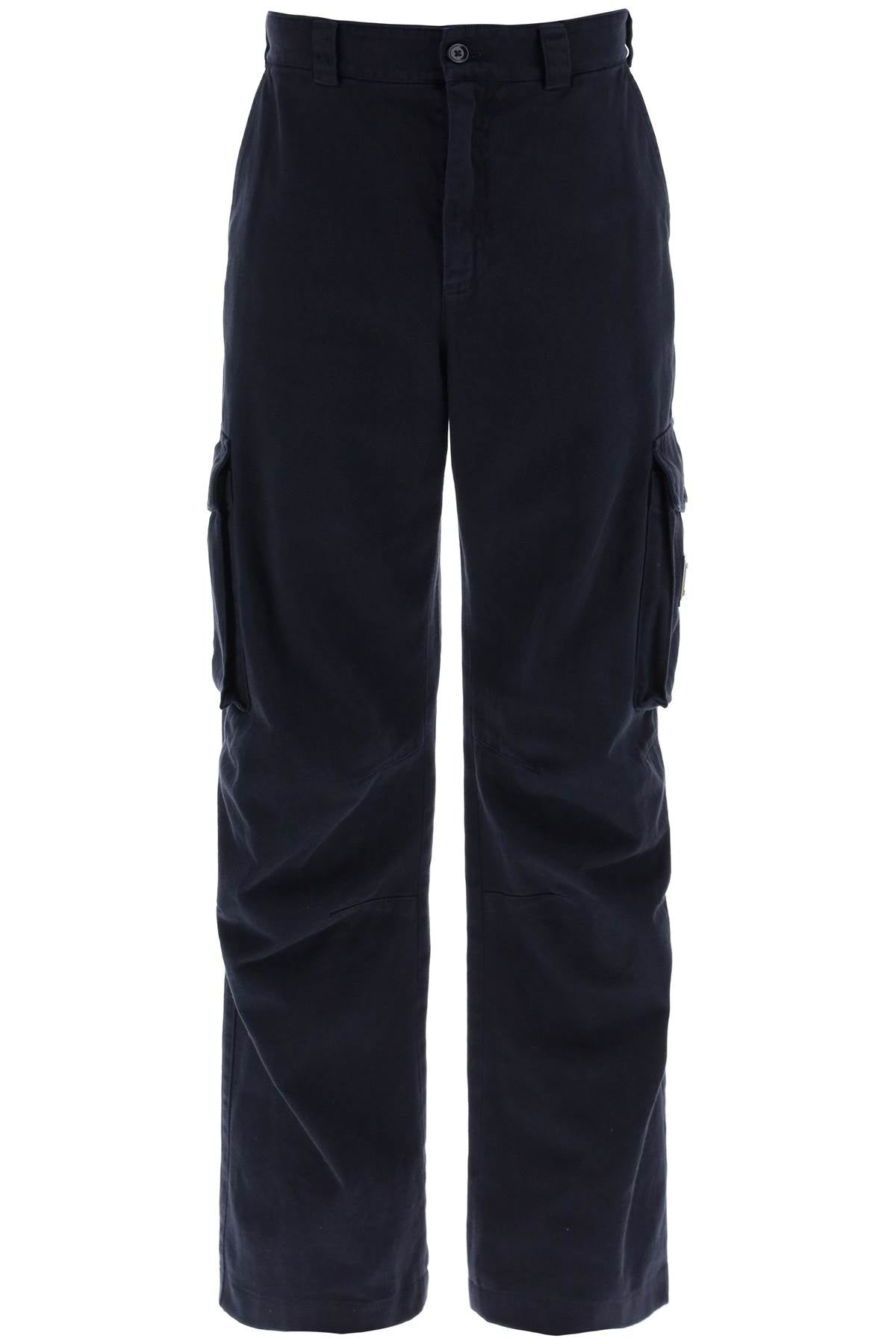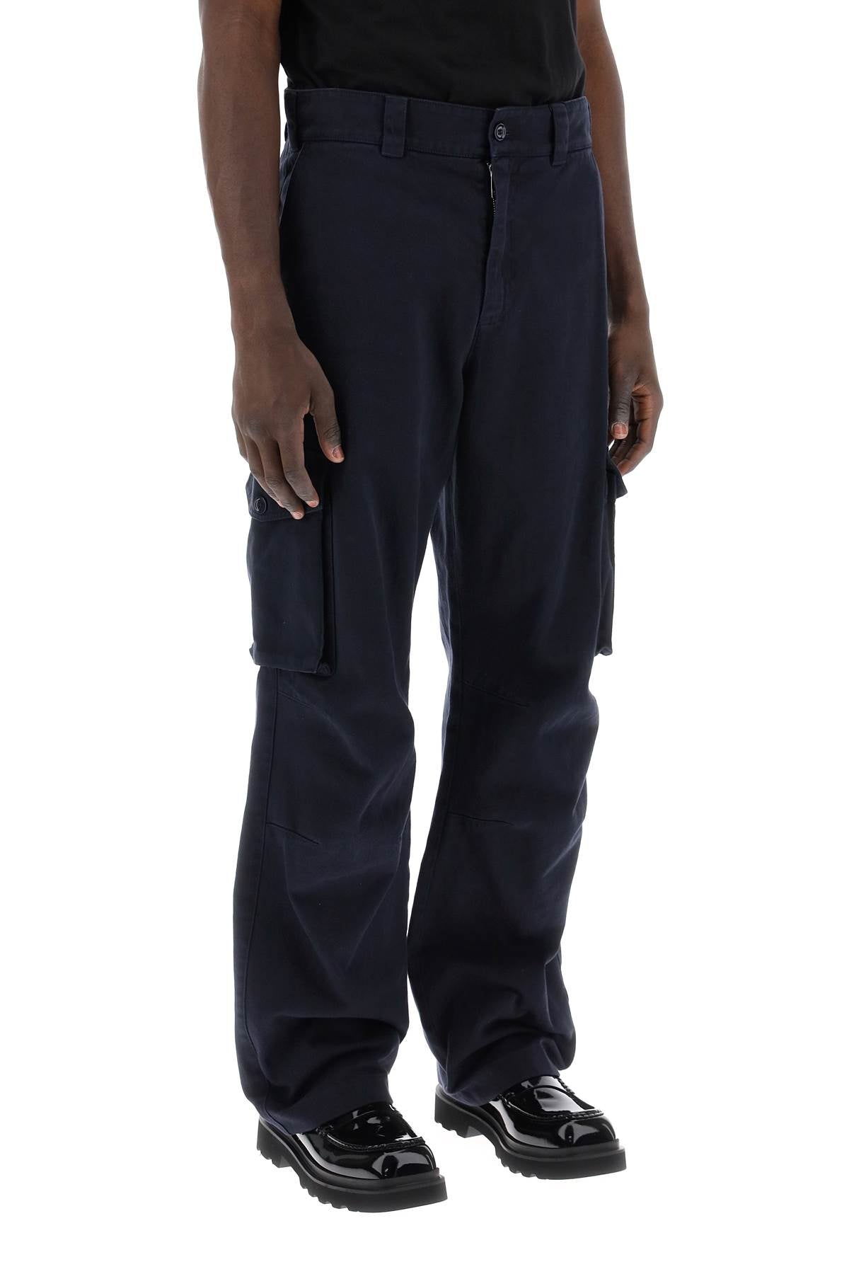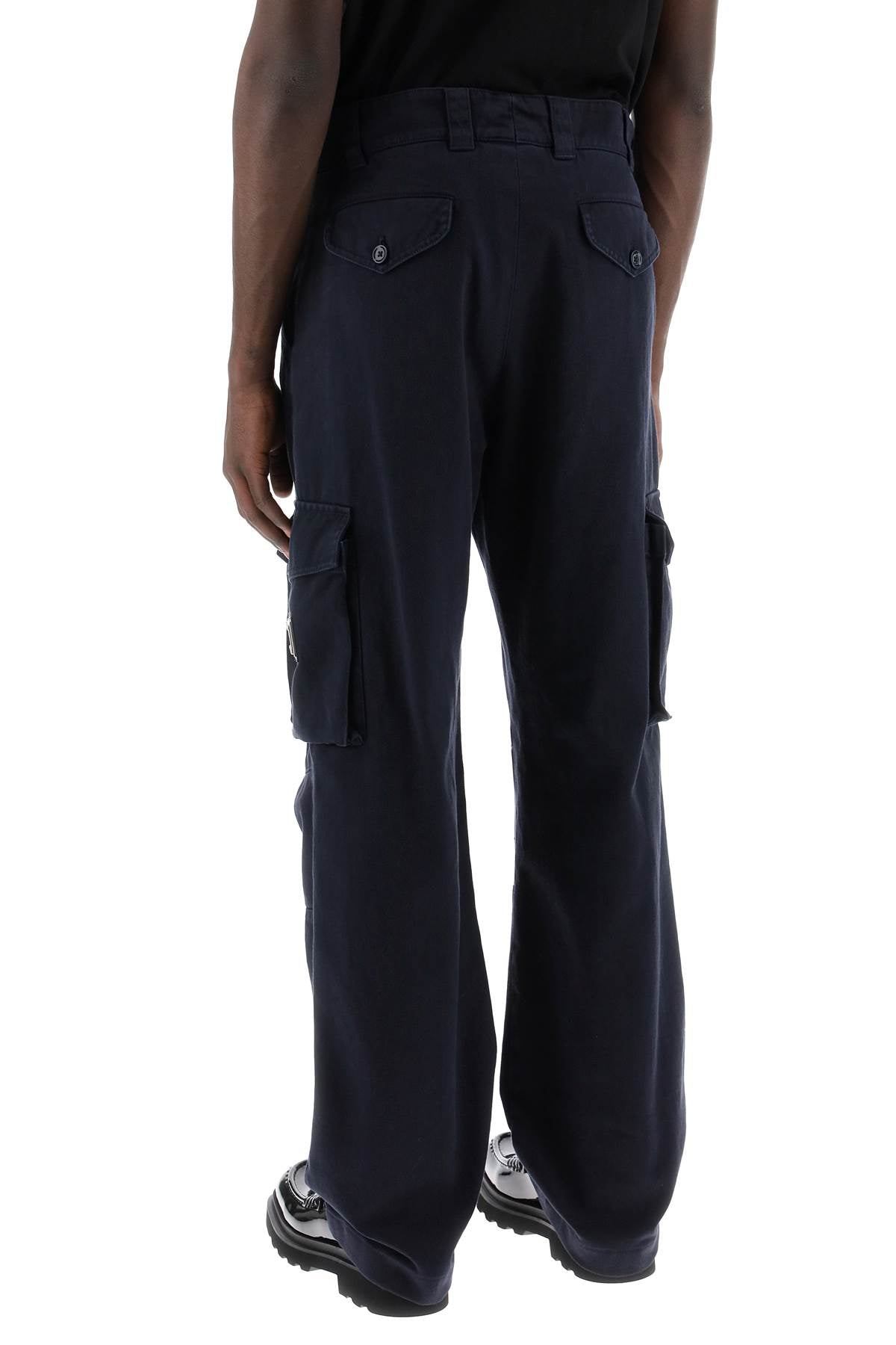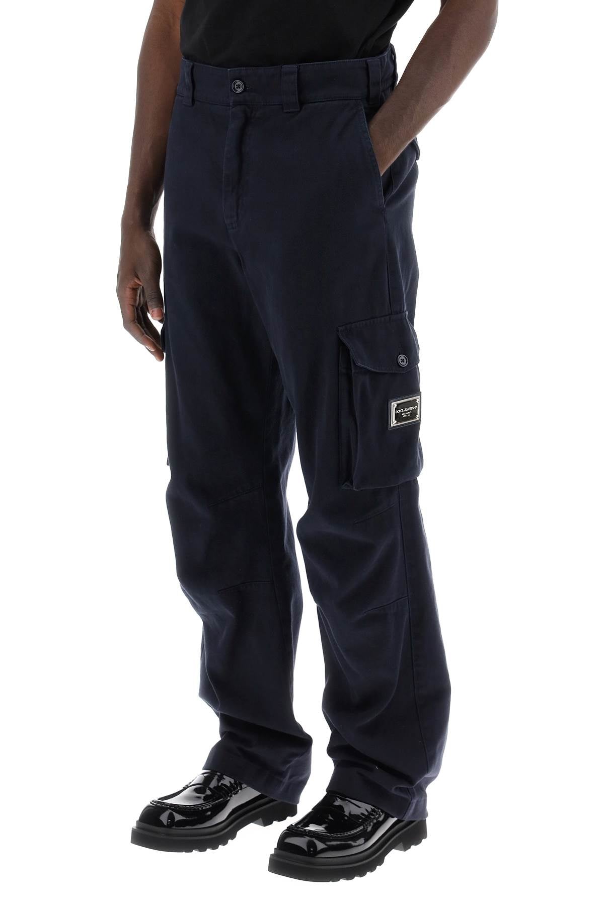 Dolce & Gabbana cargo pants made of pure cotton drill, featuring a relaxed fit with knee seams and an iconic metal logo plaque on one of the two utility pockets. Belt loops, hidden zip and button closure, front French pockets and back flap pockets. The model is 187 cm tall and wears size IT 48.