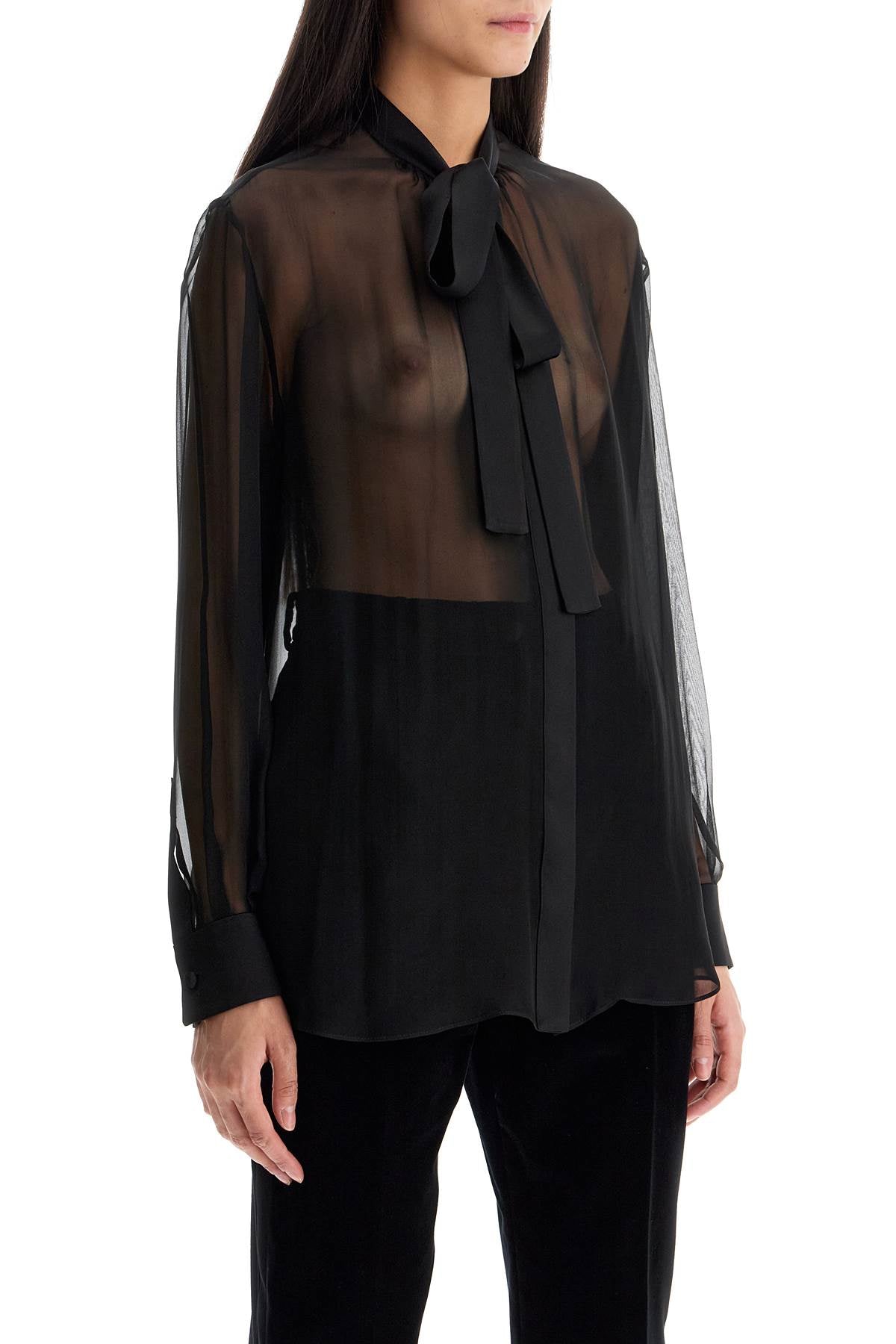 This Dolce & Gabbana shirt is made of pure silk chiffon and embellished with tone-on-tone satin trimmings. It features a round neckline with a scarf to tie into a bow, hidden button closure, and covered button cuffs. Regular fit. The model is 177 cm tall and wears size IT 40.