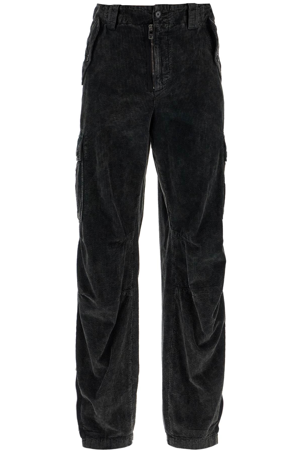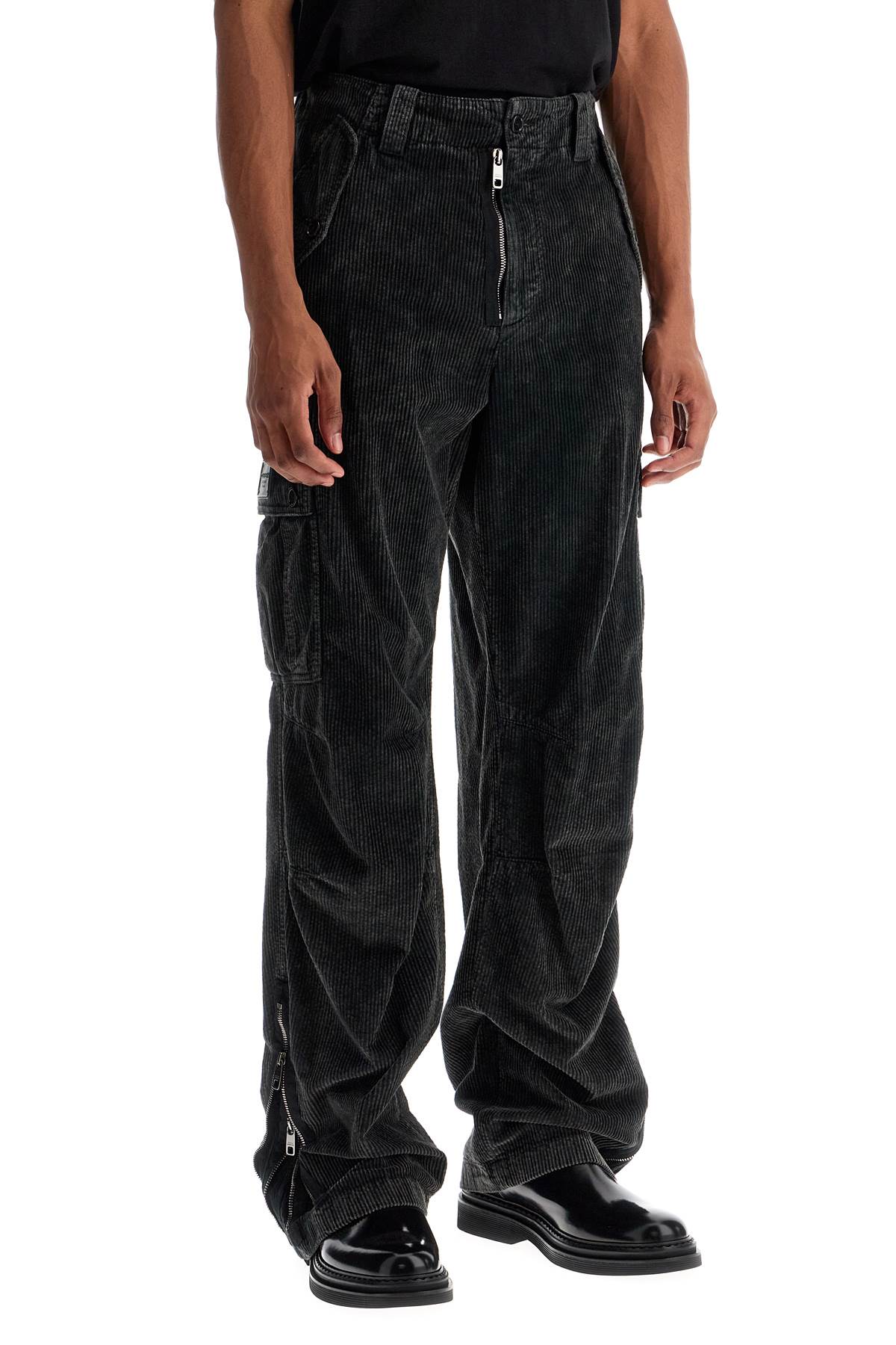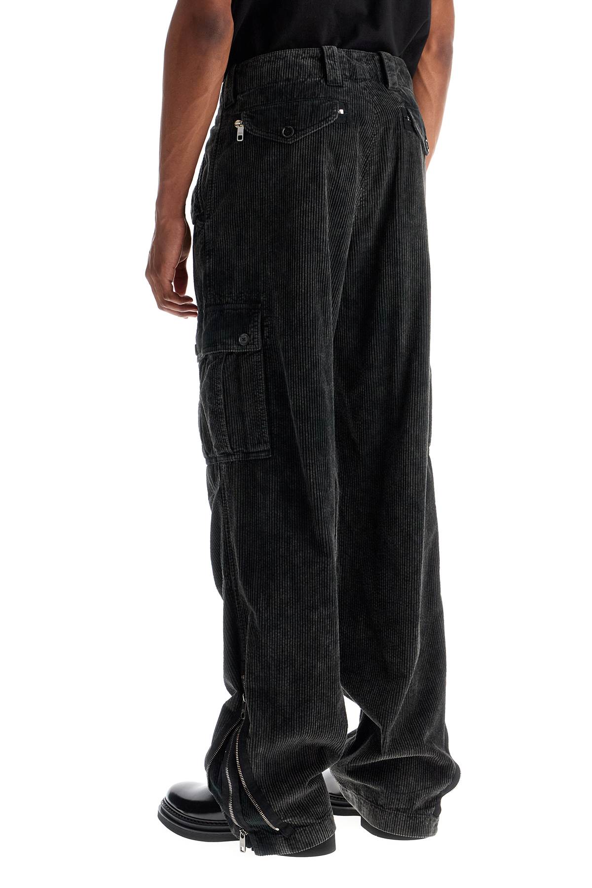 Dolce & Gabbana cargo pants in soft stretch cotton corduroy, featuring a straight and relaxed fit with knee curvature and adjustable bottom through double gusset with zip. The design is completed by side and back pockets with flaps, as well as two cargo pockets on the legs with logo tag on the right side. Regular waist with belt loops, hidden zip closure and button. The model is 182 cm tall and wears size IT 48.