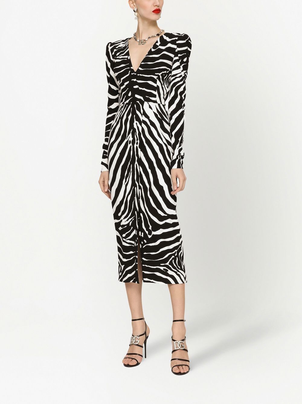 zebra-print long-sleeve dress from DOLCE & GABBANA featuring black, white, silk, zebra print, V-neck, long sleeves and open back. Size and Fit - This piece fits true to size. We recommend you get your regular size. Model is 1,75m / 5ft 8in wearing size 40 (IT)