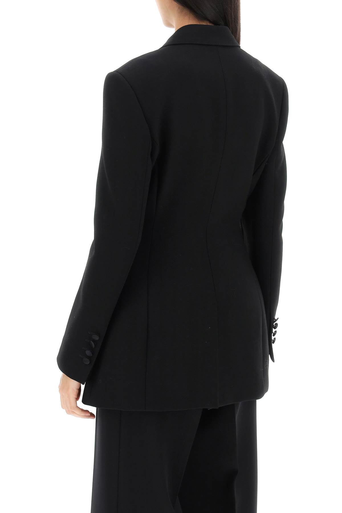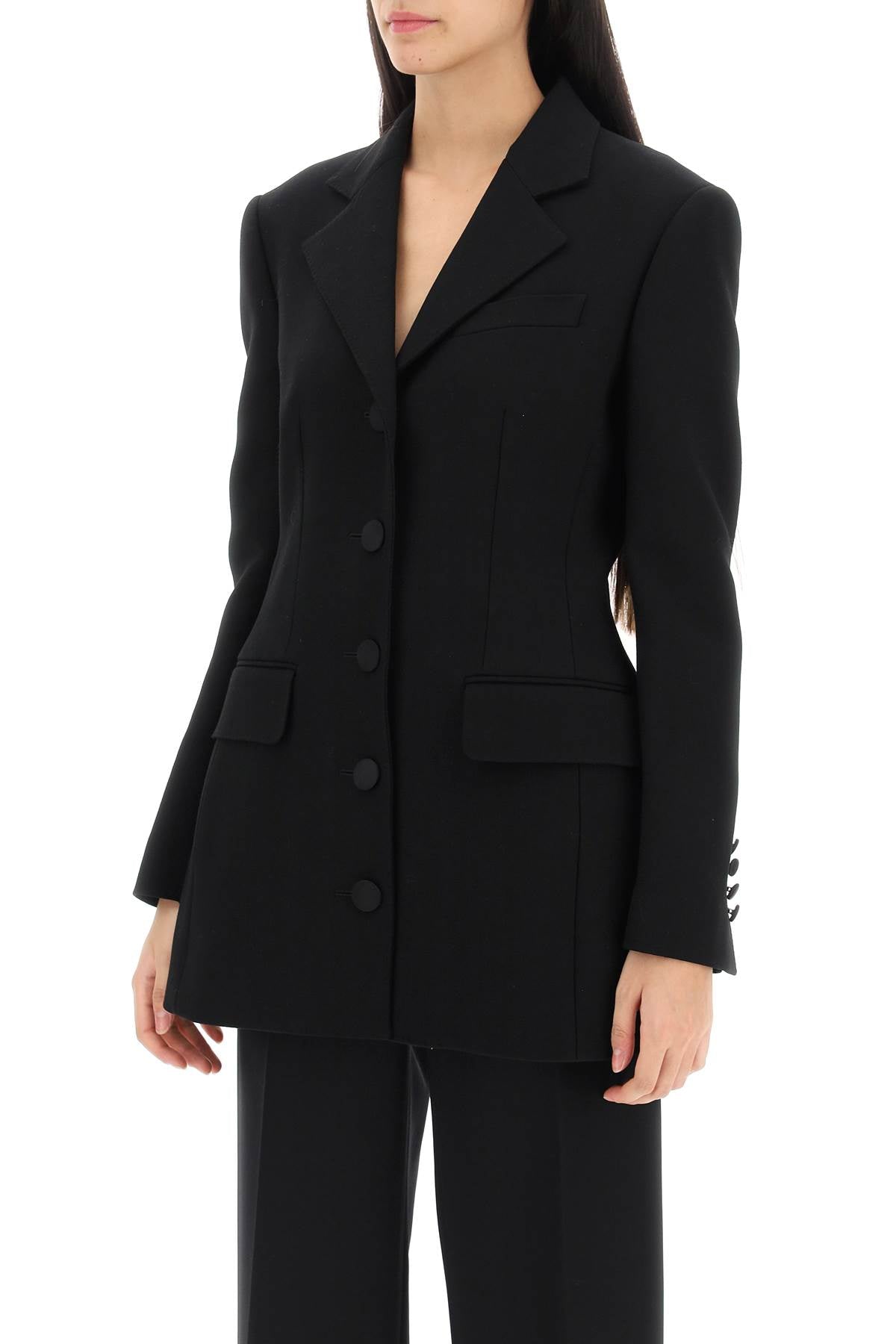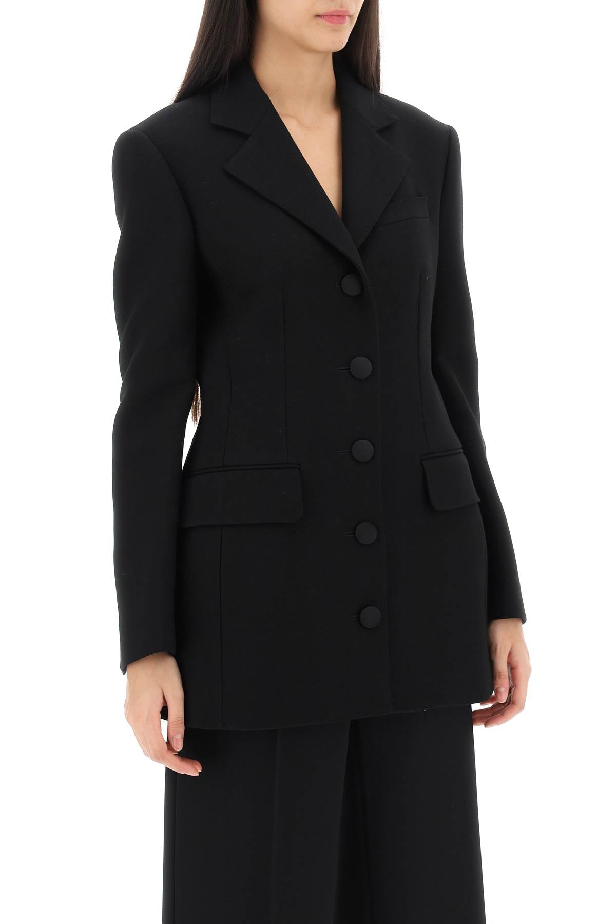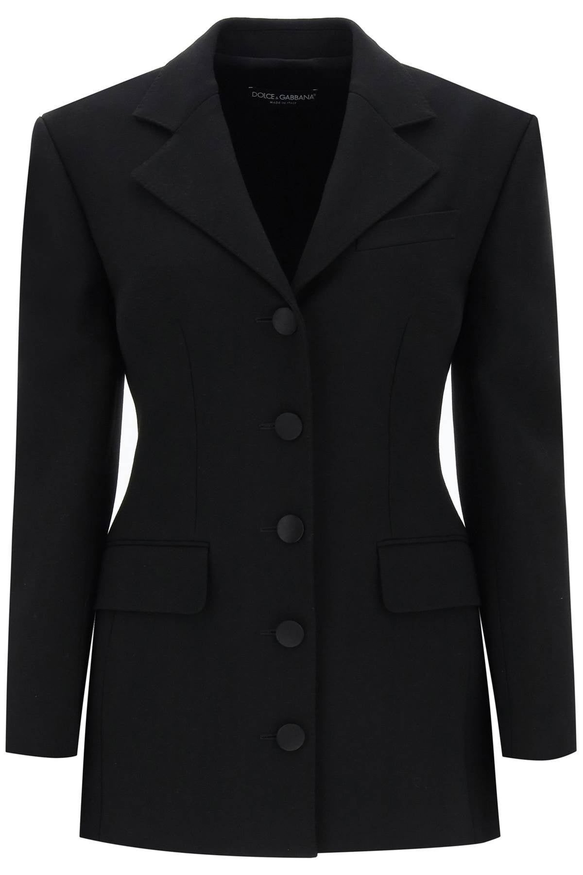 Dolce&Gabbana Turlington jacket crafted in wool cady with single-breasted design and satin-covered button closure. It features notched lapel, a welt pocket on the chest, jetted pockets with flap, buttoned cuffs and back-center vent. Lined in stretch silk. Shaped Dolce fit enhanced by padding on the hips and structured shoulders. The model is 177 cm tall and wears size IT 42.