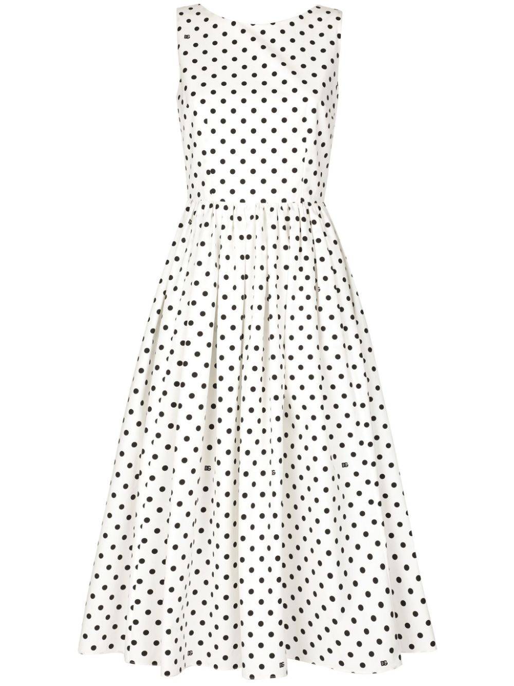 white/black cotton polka dot print boat neck concealed rear zip fastening sleeveless mid-length Size and Fit - This piece fits true to size. We recommend you get your regular size. Model is 1,75m / 5ft 8in wearing size 40 (IT)