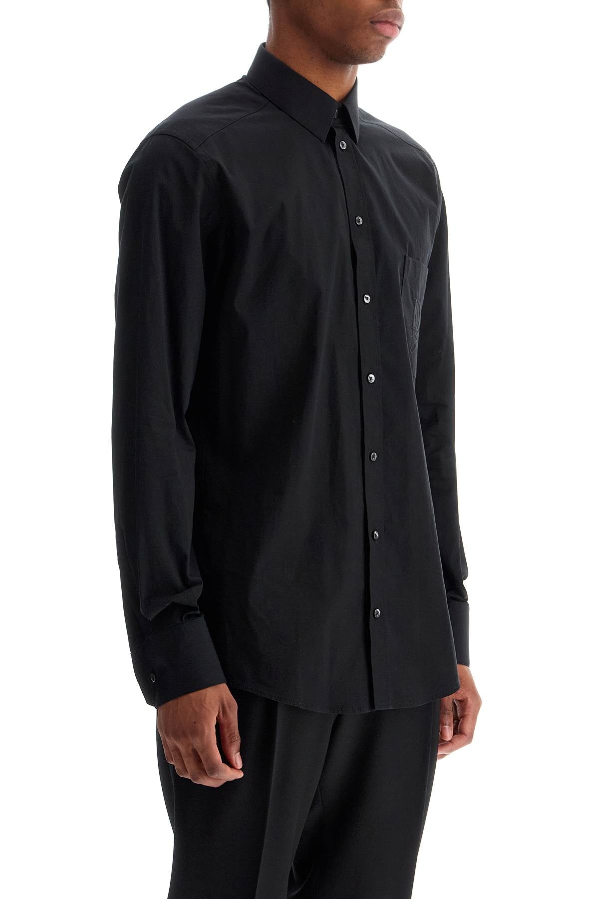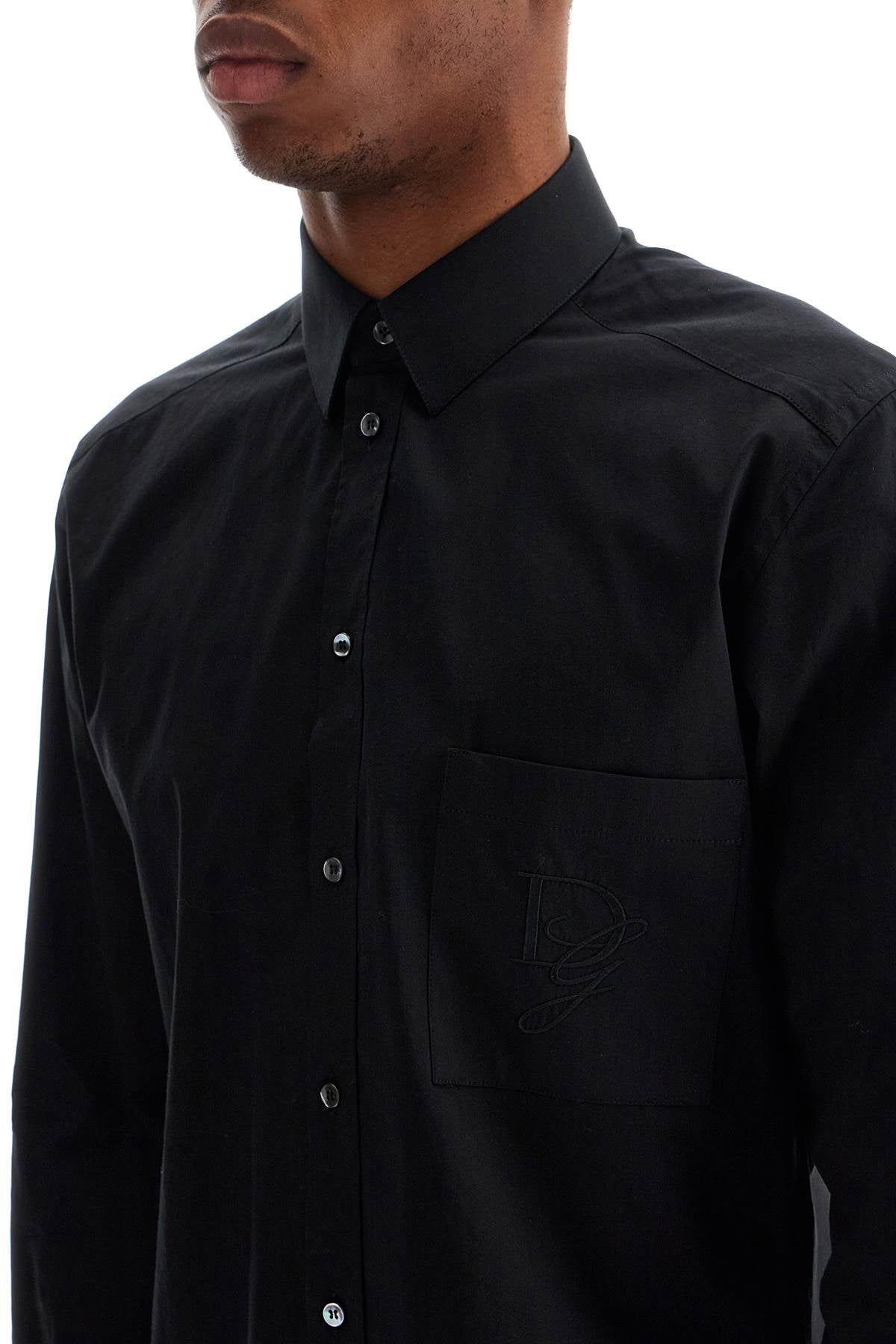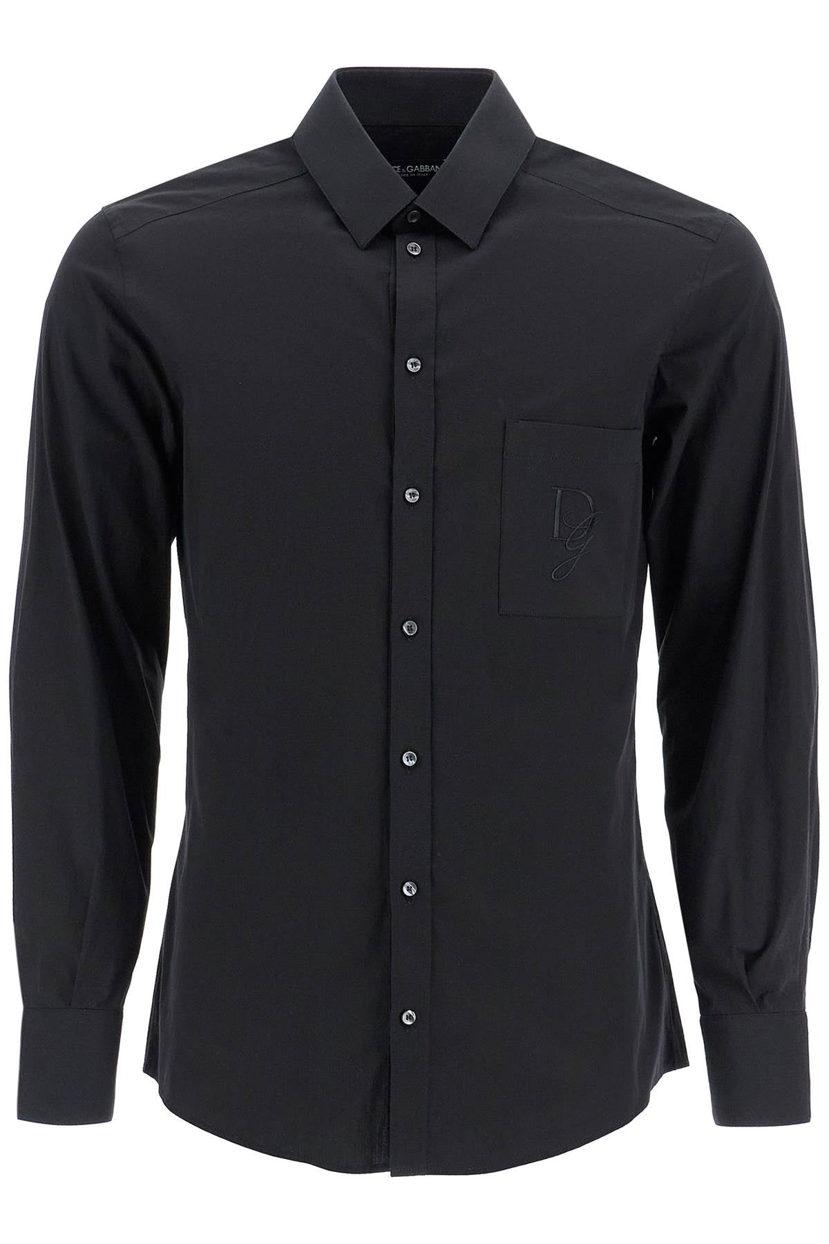 Crafted in comfortable stretch cotton poplin with a regular fit, this Dolce & Gabbana shirt features a tonal DG embroidered chest pocket. It has an Italian collar, button placket with cannon detail, and convertible cuffs. Back yoke with pleat. The model is 182 cm tall and wears size 39.