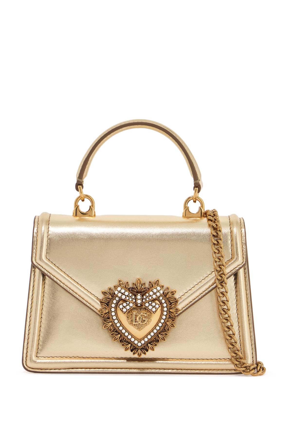 Dolce & Gabbana gold nappa shoulder bag with crystal heart and chain strap