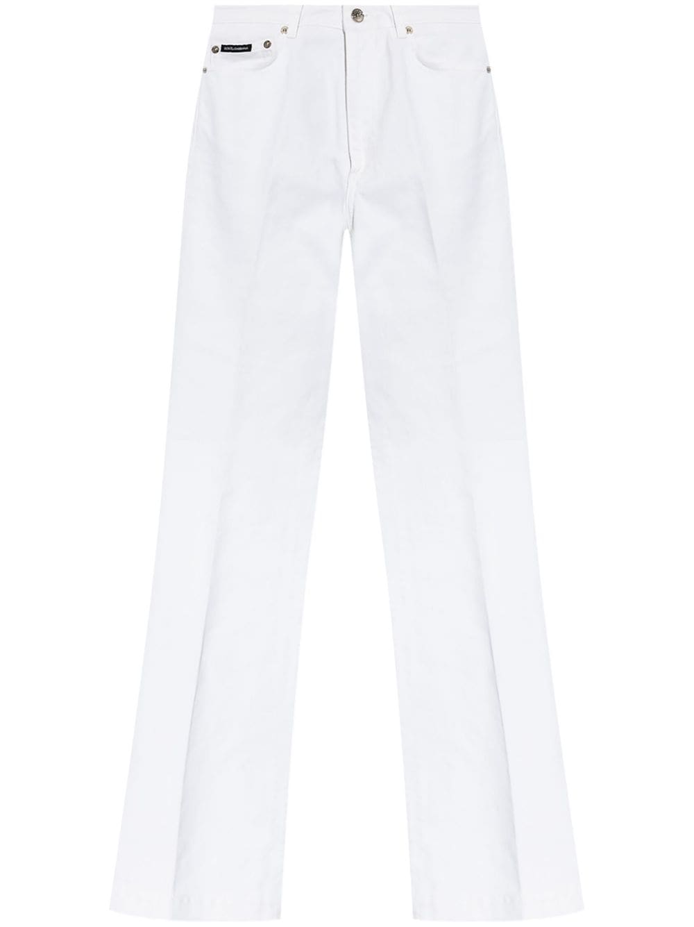 white cotton flared design classic five pockets front button and zip fastening belt loops Size and Fit - This piece fits true to size. We recommend you get your regular size. Model is 1,75m / 5ft 8in wearing size 40 (IT)
