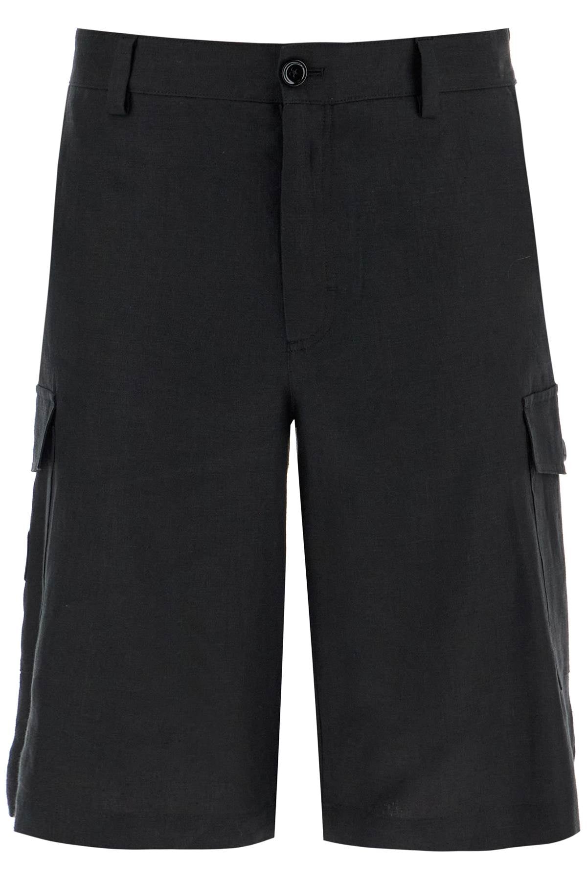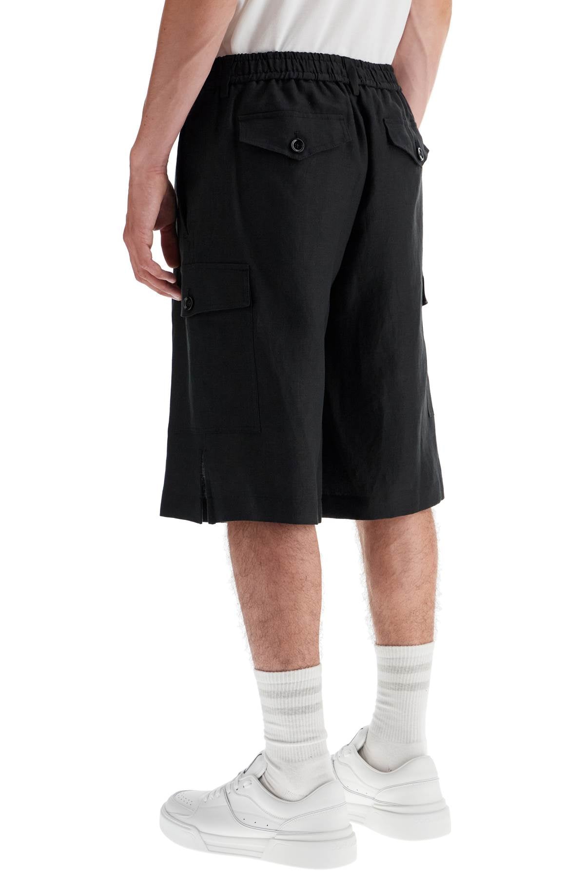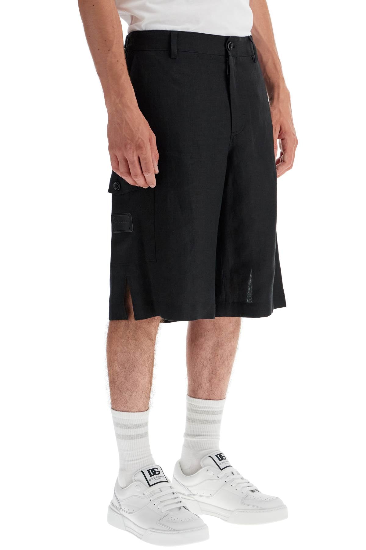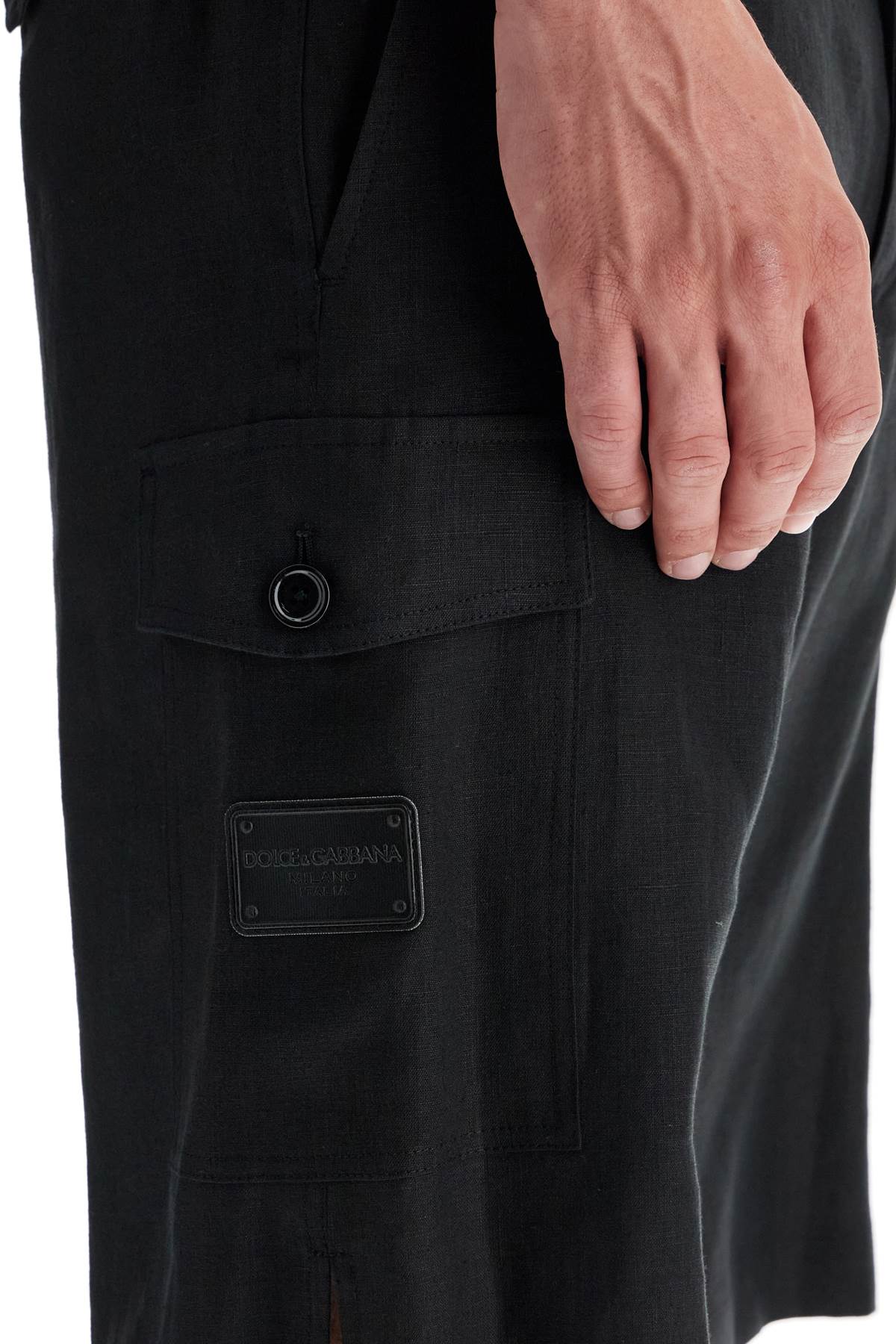 Dolce & Gabbana cargo-style Bermuda shorts made of pure linen fabric with a regular fit and straight cut. The four-pocket construction is enriched by two flap pockets on the legs and completed by side slits at the bottom, semi-elasticated waistband with belt loops and front zip closure. The model is 187 cm tall and wears size IT 48.