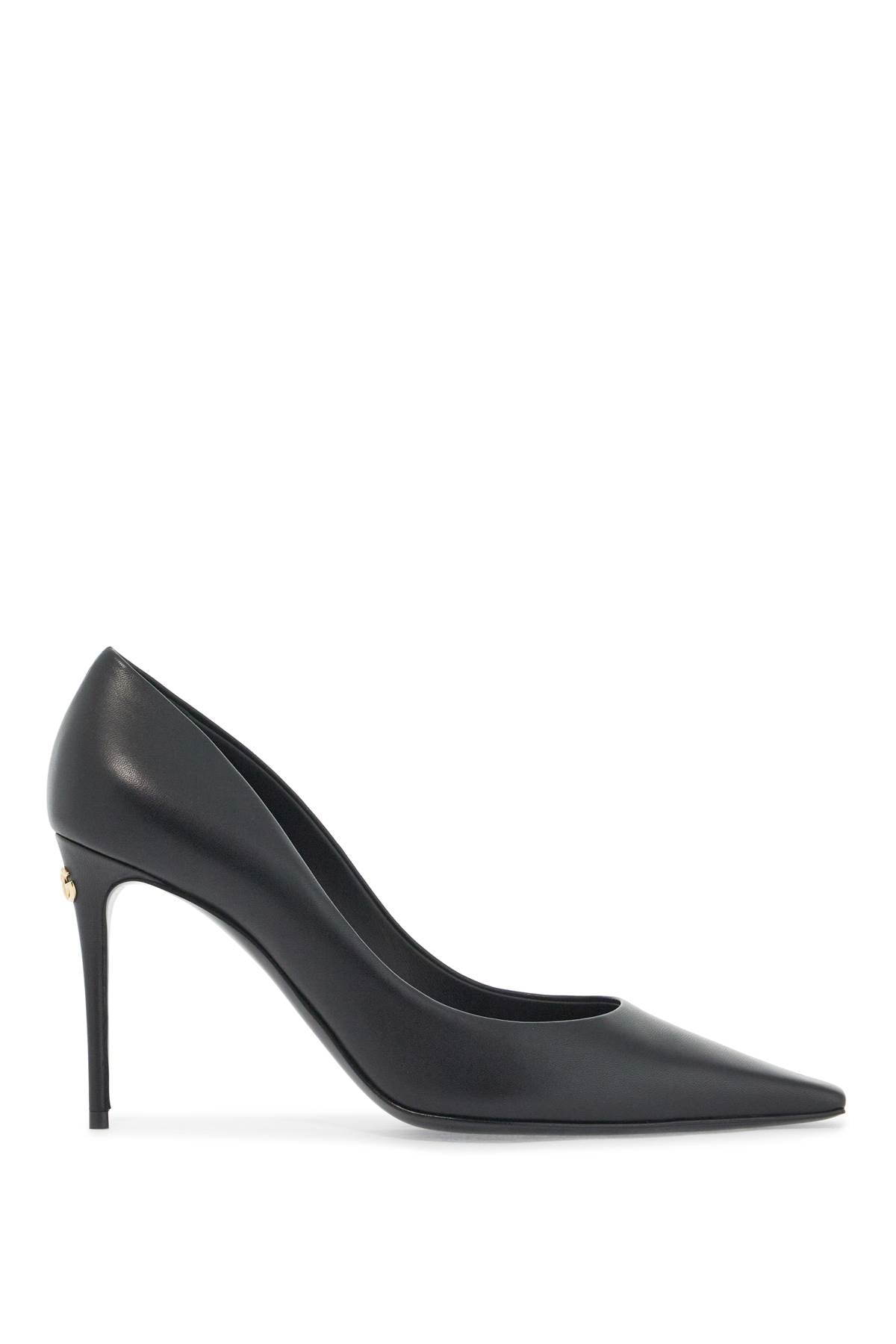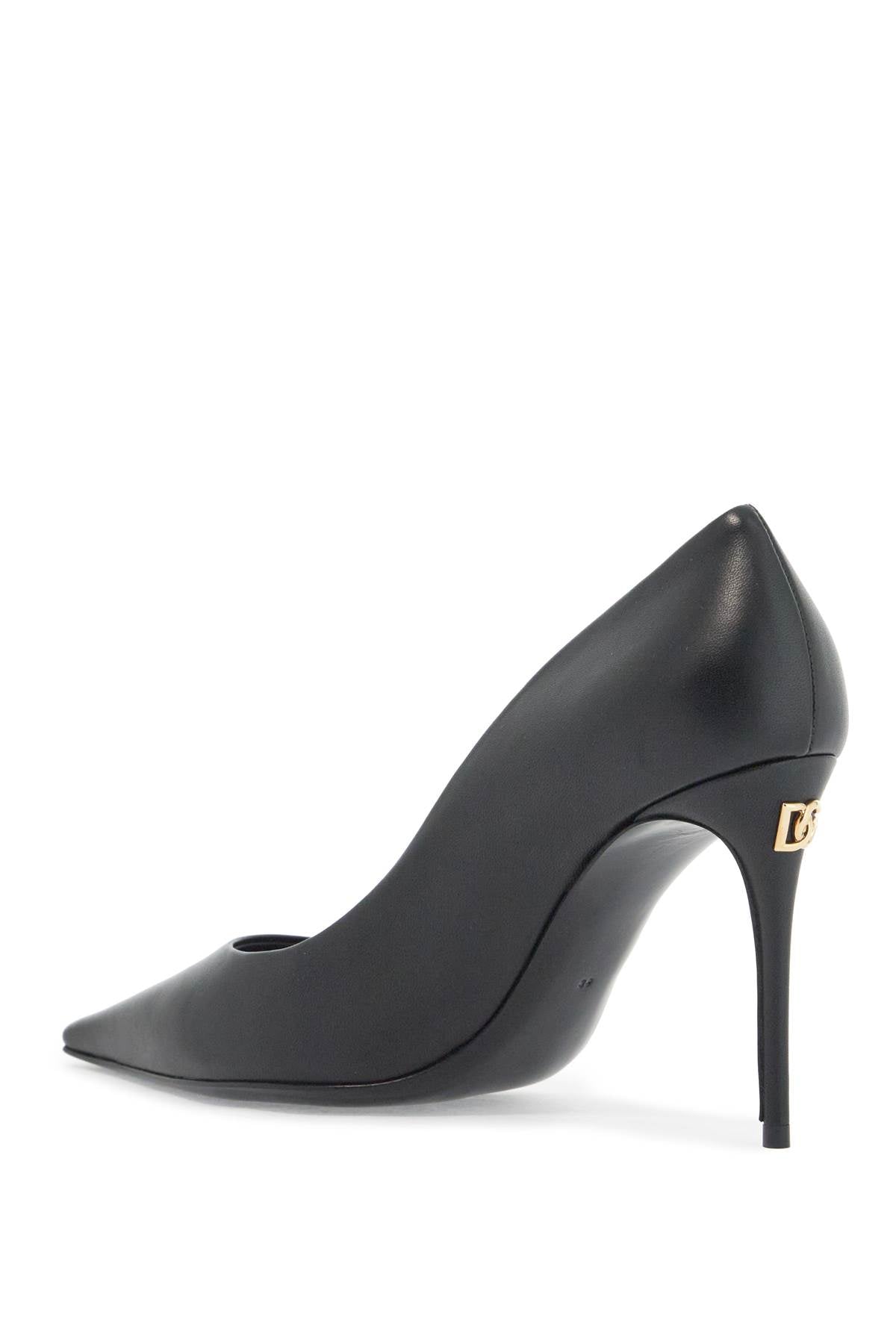 These Dolce & Gabbana pumps are made of soft leather and feature a tapered, squared toe. The design is completed with a golden metal DG logo on the stiletto heel. The insole is crafted from leather and features the brand's logo label, while the sole is made of leather. Size and Fit - Heel Height = 9,5 cm,