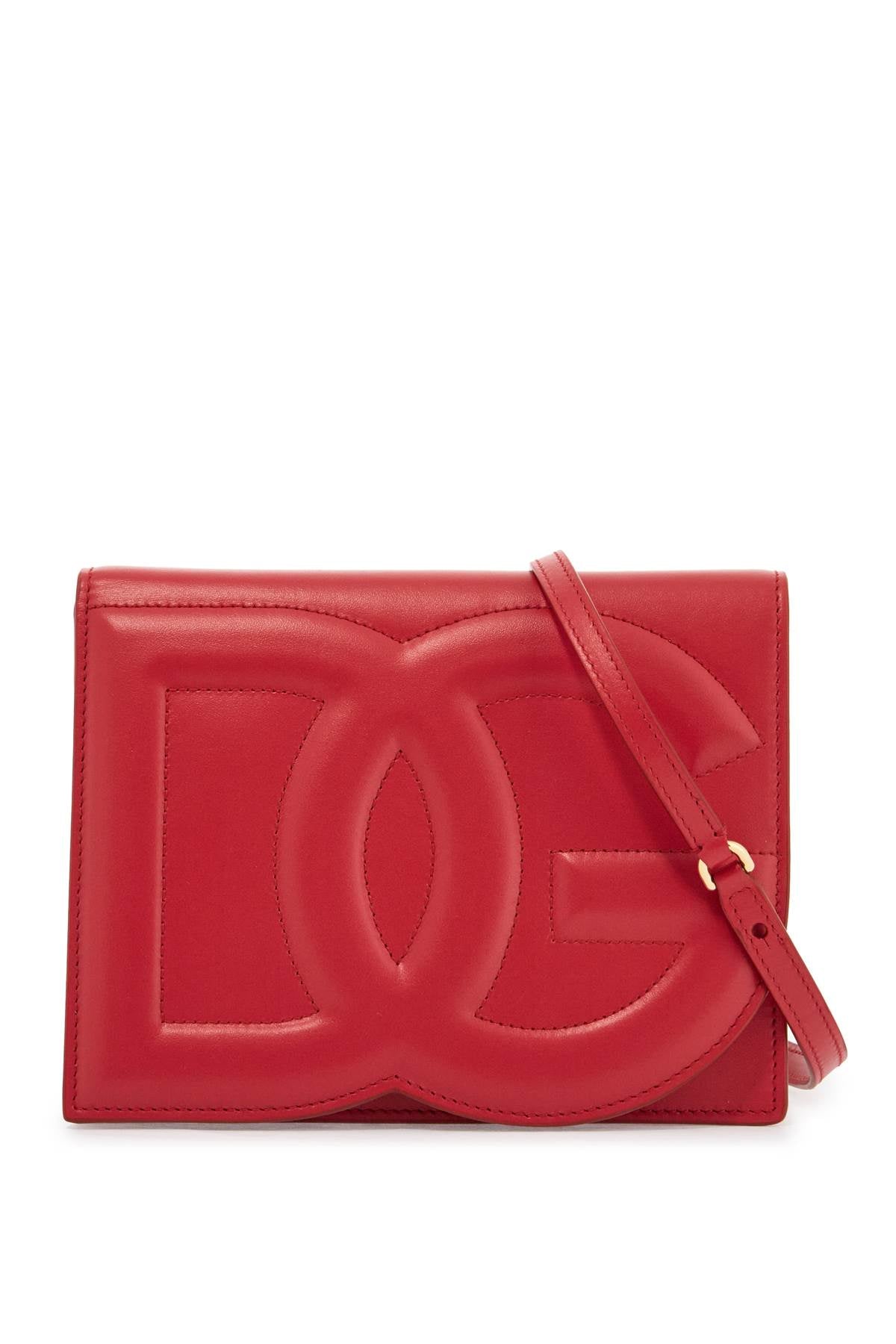 Dolce & Gabbana red calfskin shoulder bag with 3d logo